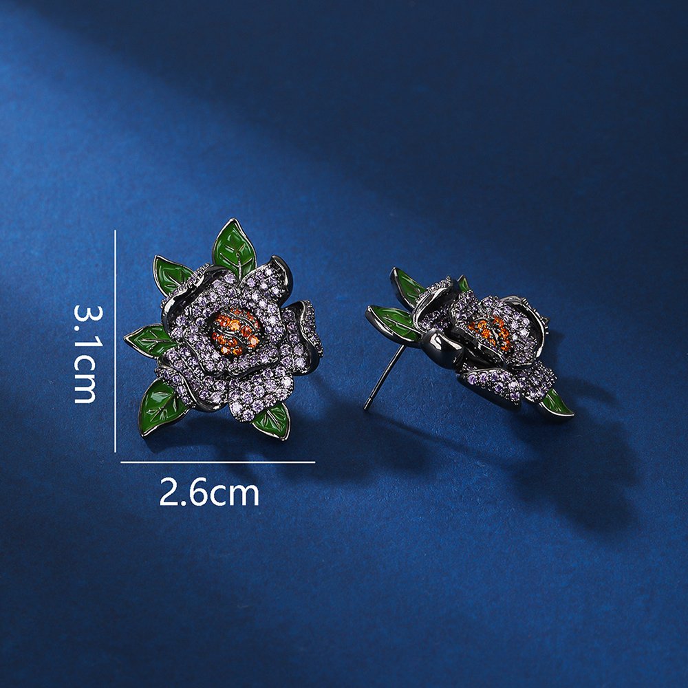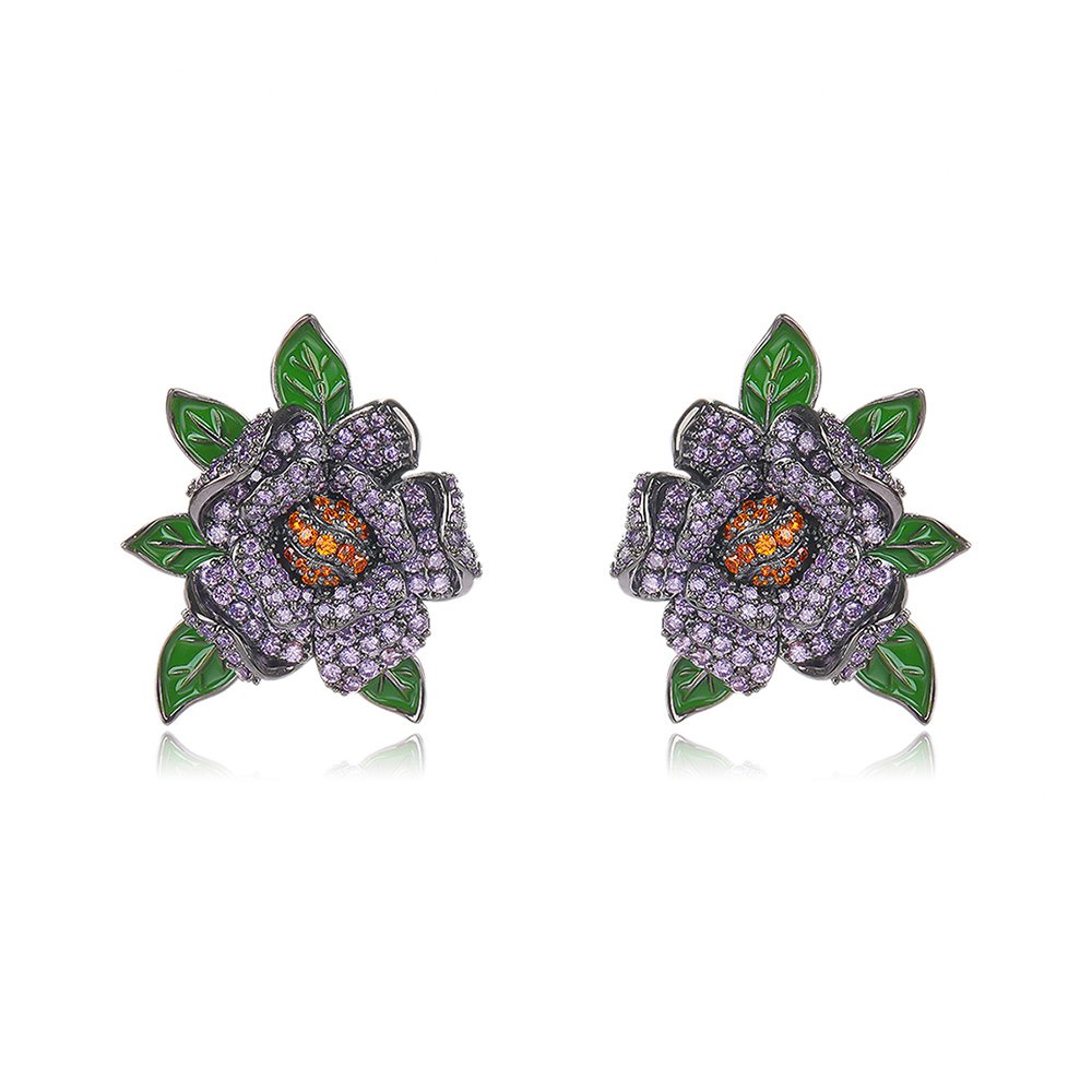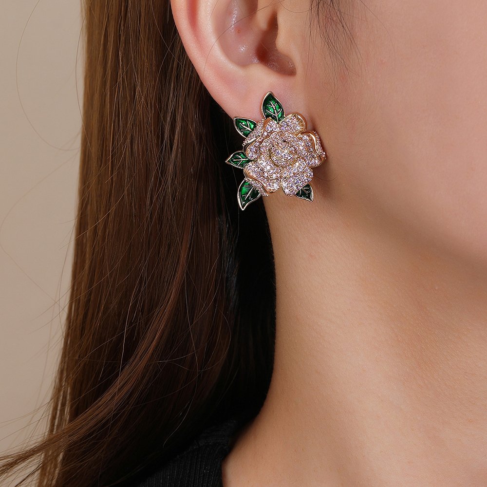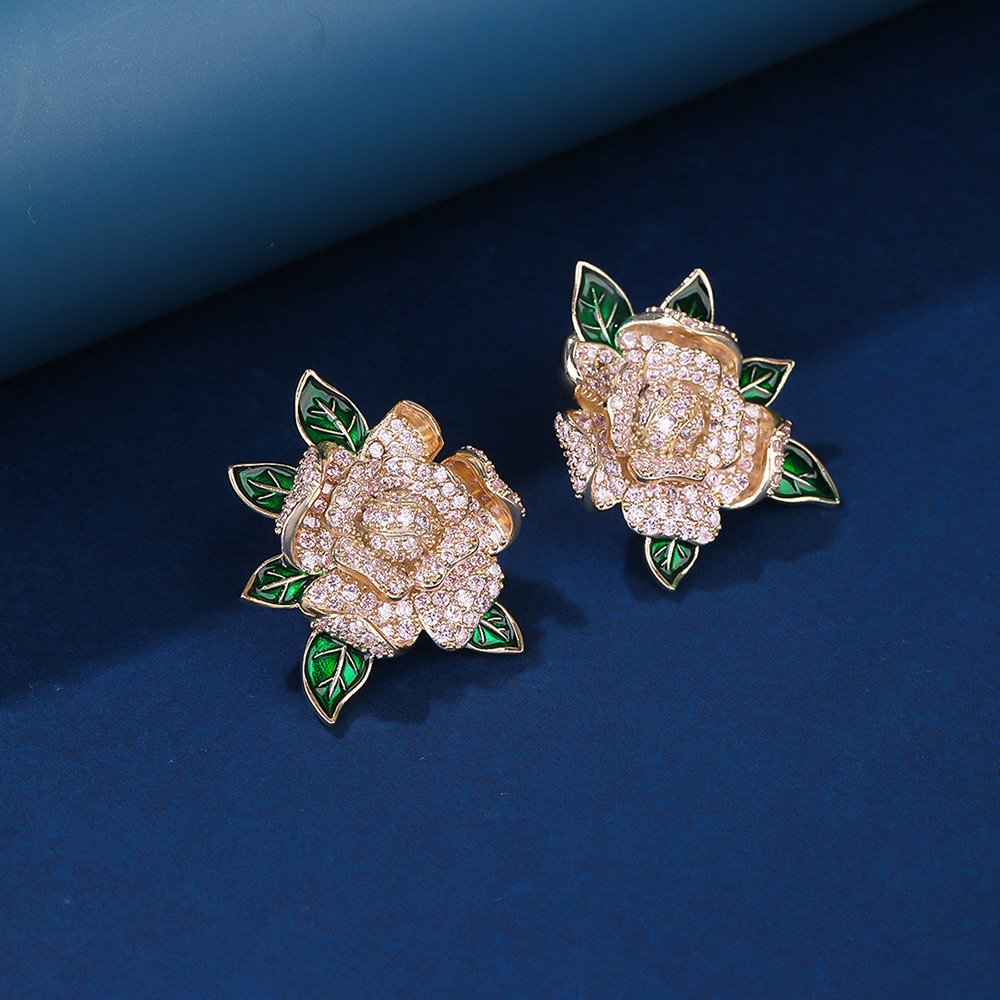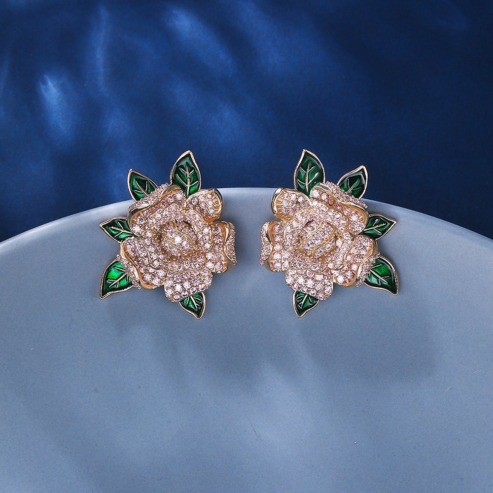 Boutique owners and online sellers can purchase these wholesale floral zircon earrings at cheap factory prices for maximum profitability. We offer a wide variety of styles, including roses with green enamel leaves and shimmering multi-petal blossom designs. These statement pieces are ideal for bridal showers, evening parties, or upscale retail collections in competitive fashion markets.