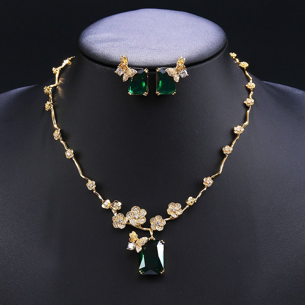 Wholesale Floral Zircon Set offers a breathtaking aesthetic that combines botanical grace with high-end modern jewelry craftsmanship. We manufacture this exquisite jewelry ensemble using a high-quality copper base and professional-grade real gold plating for lasting shine. The necklace and matching earrings feature stunning, radiant emerald-cut zircon stones accented by delicate micro-pavé floral and butterfly motifs.