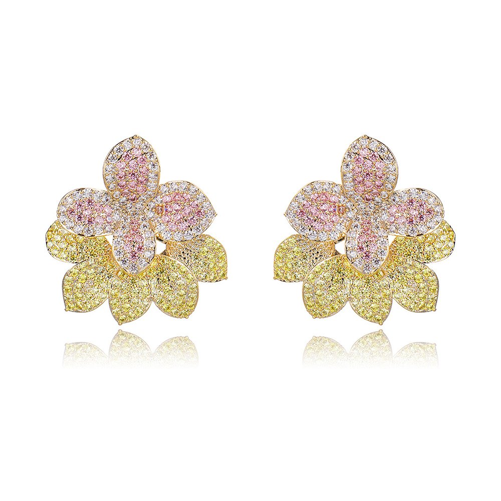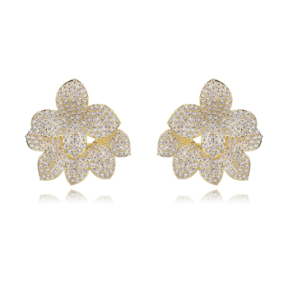 Wholesale Flower Zircon Earrings – Real Gold Plated Copper