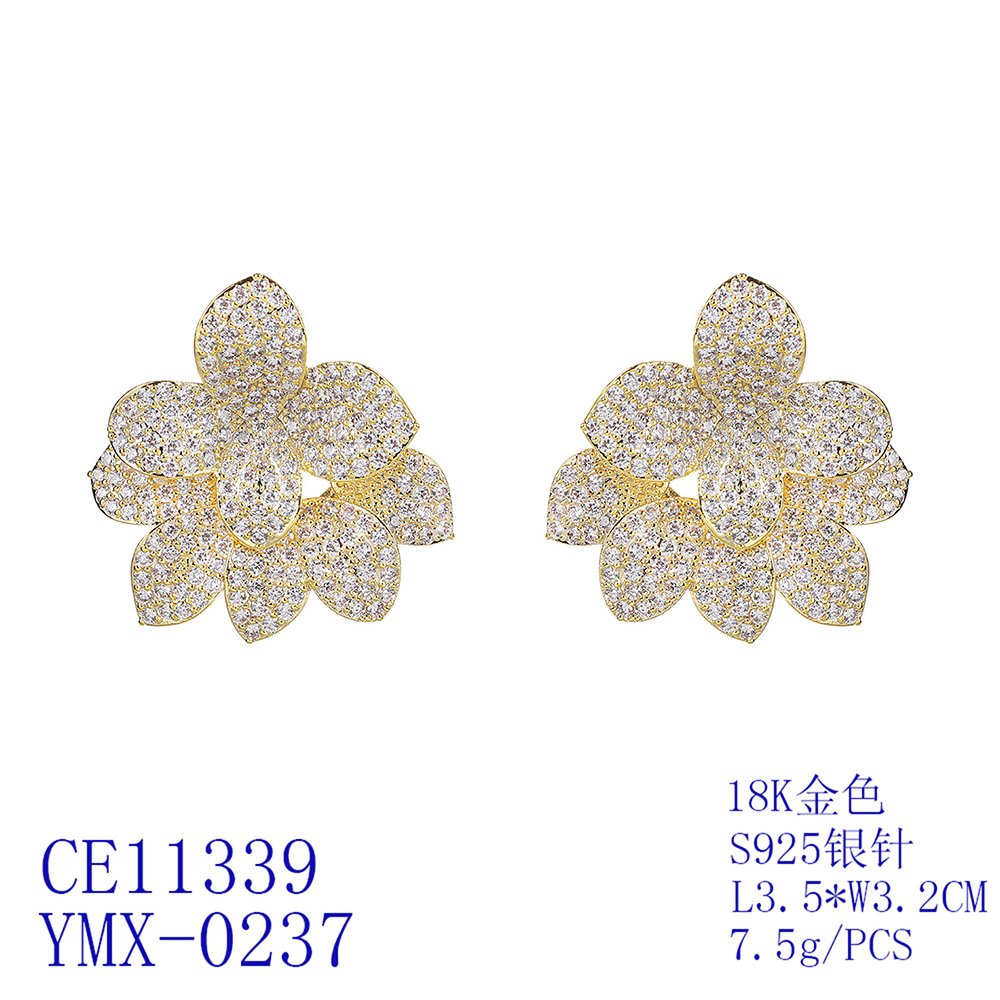 Wholesale Flower Zircon Earrings offer a magnificent blooming design that brings a touch of natural elegance to any jewelry collection. We meticulously craft these stunning floral studs using a high-quality copper base for lasting durability and a premium feel. Every petal features a dense pavé setting of brilliant white zircons that catch light from every possible angle.