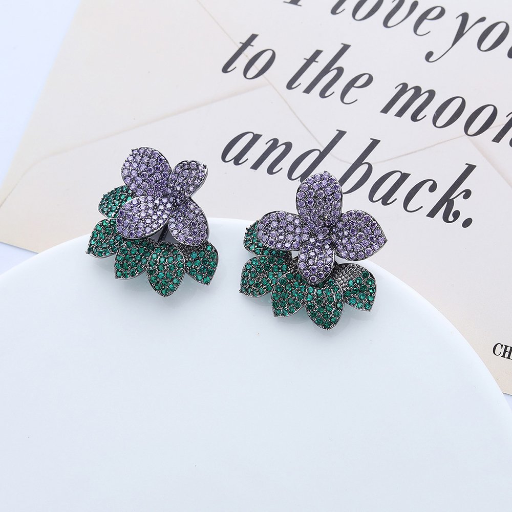 Boutique owners and online sellers will find these wholesale flower zircon earrings highly attractive to fashion-forward customers seeking luxury. The intricate layered petal design creates a three-dimensional effect that mimics the beauty of a real flower in full bloom. We securely set each stone to prevent loss and maintain the earring’s breathtaking sparkle through long-term wear.