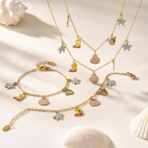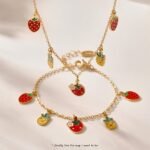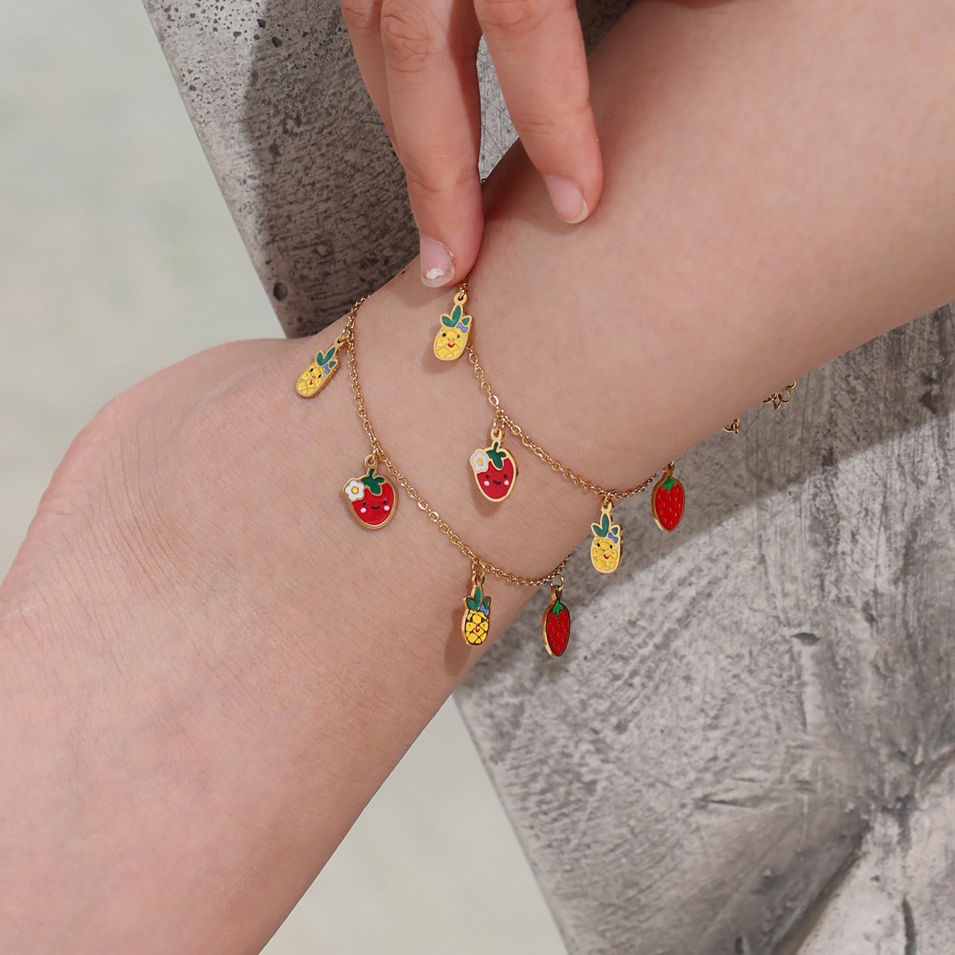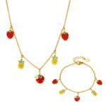 Elevate your inventory with our Wholesale Fruit Kids Set. This charming new jewelry set includes a necklace and a bracelet, featuring delightful fruit-shaped enamel designs. Crafted from durable stainless steel and richly plated with non-fading 18K real gold, this set is perfect for children. Its vibrant and fun design makes it a fashionable and long-lasting accessory. At junejewelry.com, we provide original, unique products. Our factory-direct pricing ensures excellent value. It is also cheap. We guarantee high quality. Enjoy free shipping. Attract more traffic. Significantly boost sales on your independent fashion jewelry wholesale website.