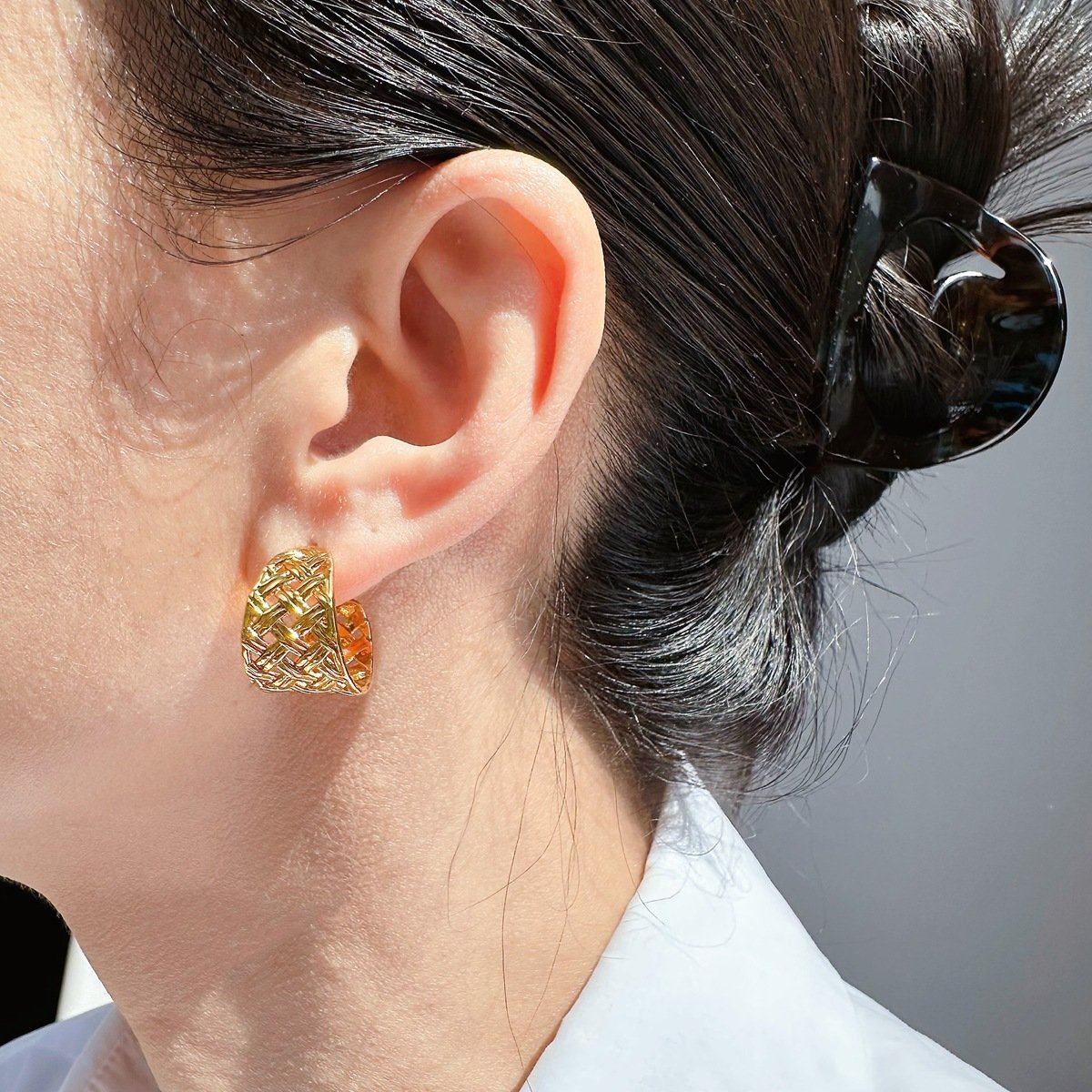 Wholesale Geometric C-Hoop Earrings – 18K Gold & Platinum