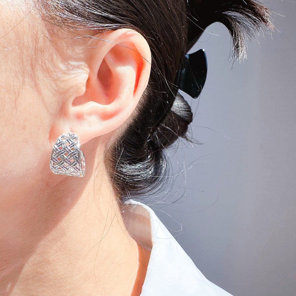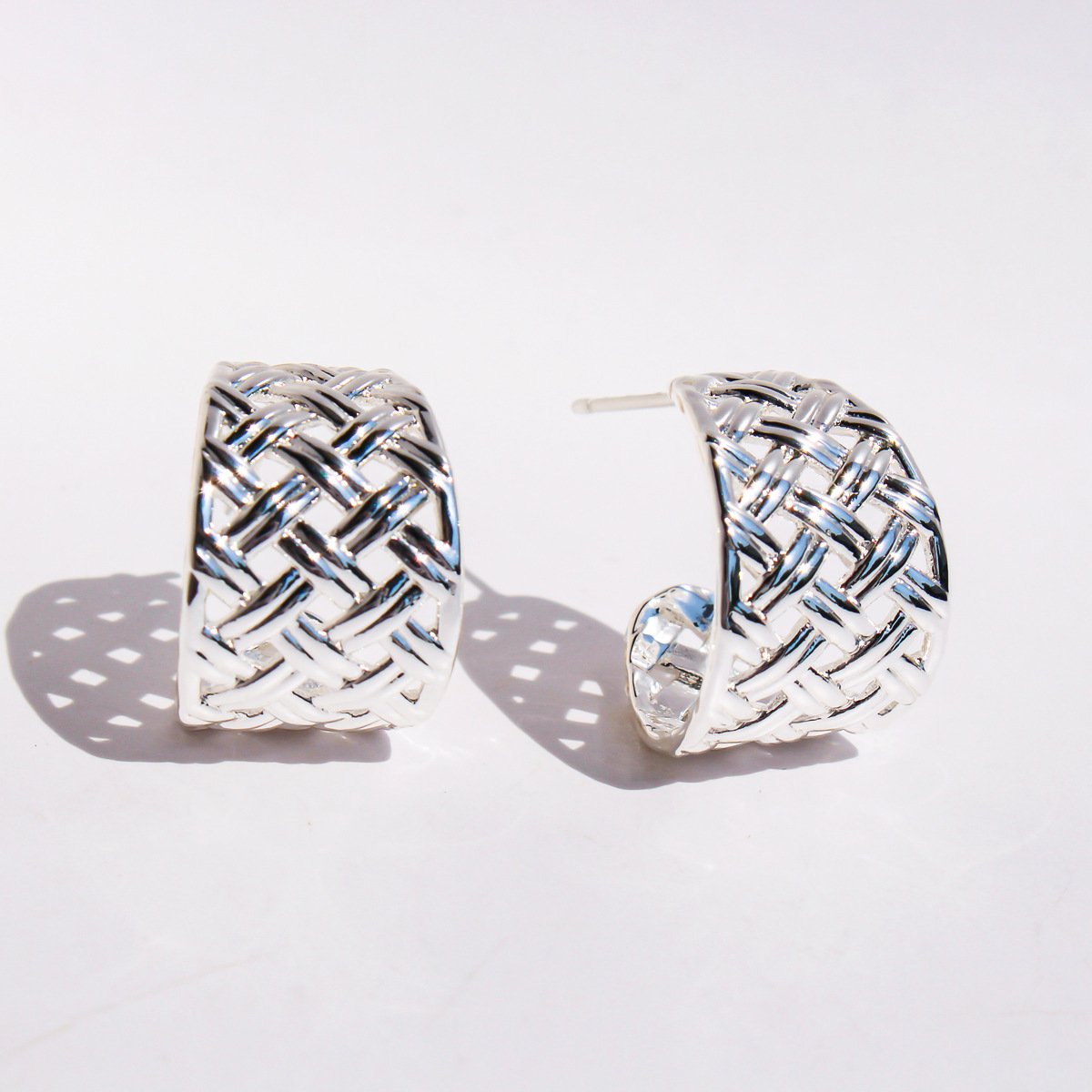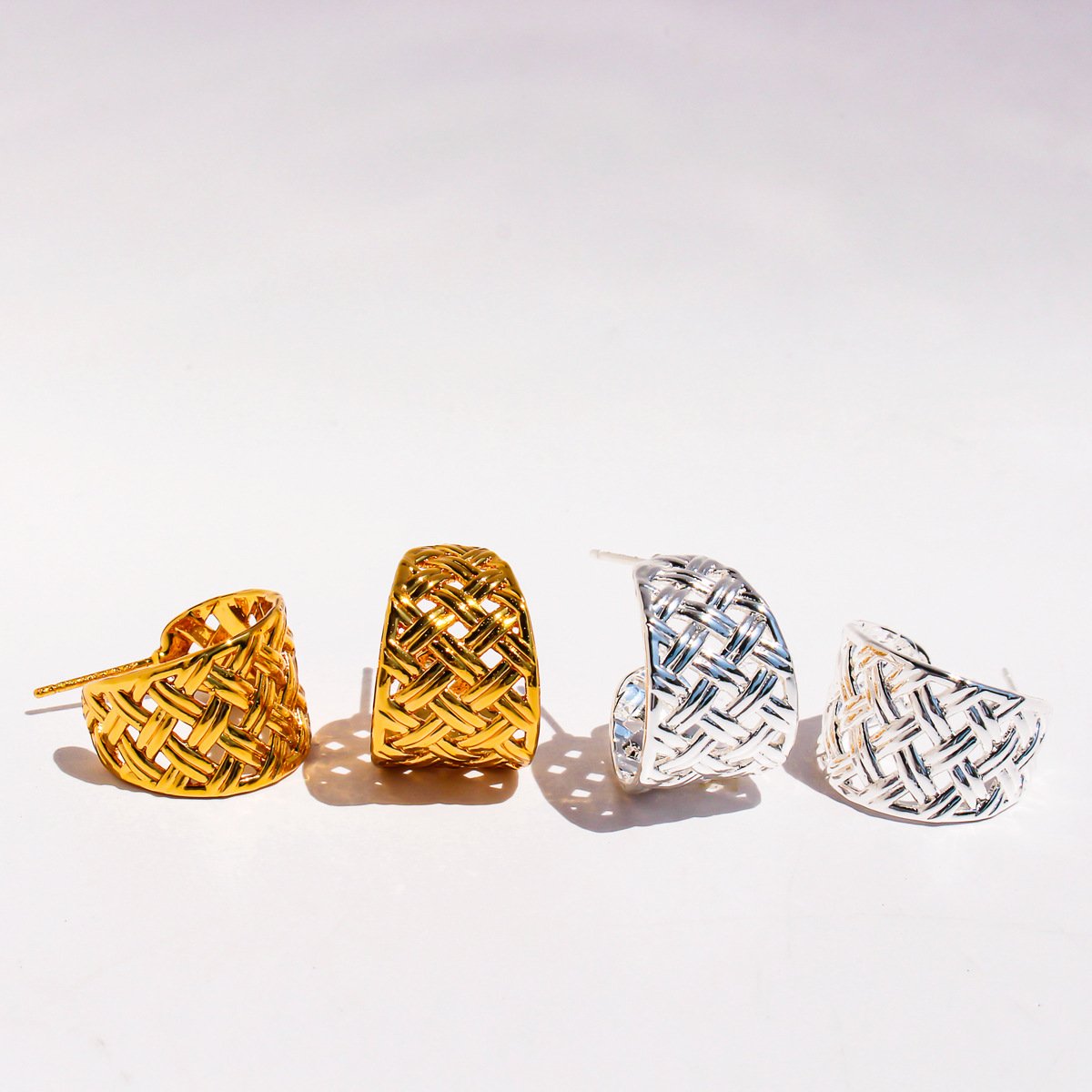 Elevate your inventory with our unique Wholesale Geometric C-Hoop Earrings. These artistic earrings feature an intricate hollow rhombus pattern, reminiscent of woven grids and a charming pastoral style, offering a touch of relaxed elegance. Crafted from high-quality brass, they are available in both luxurious 18K gold plating and sleek platinum plating, ensuring durability and a premium finish.