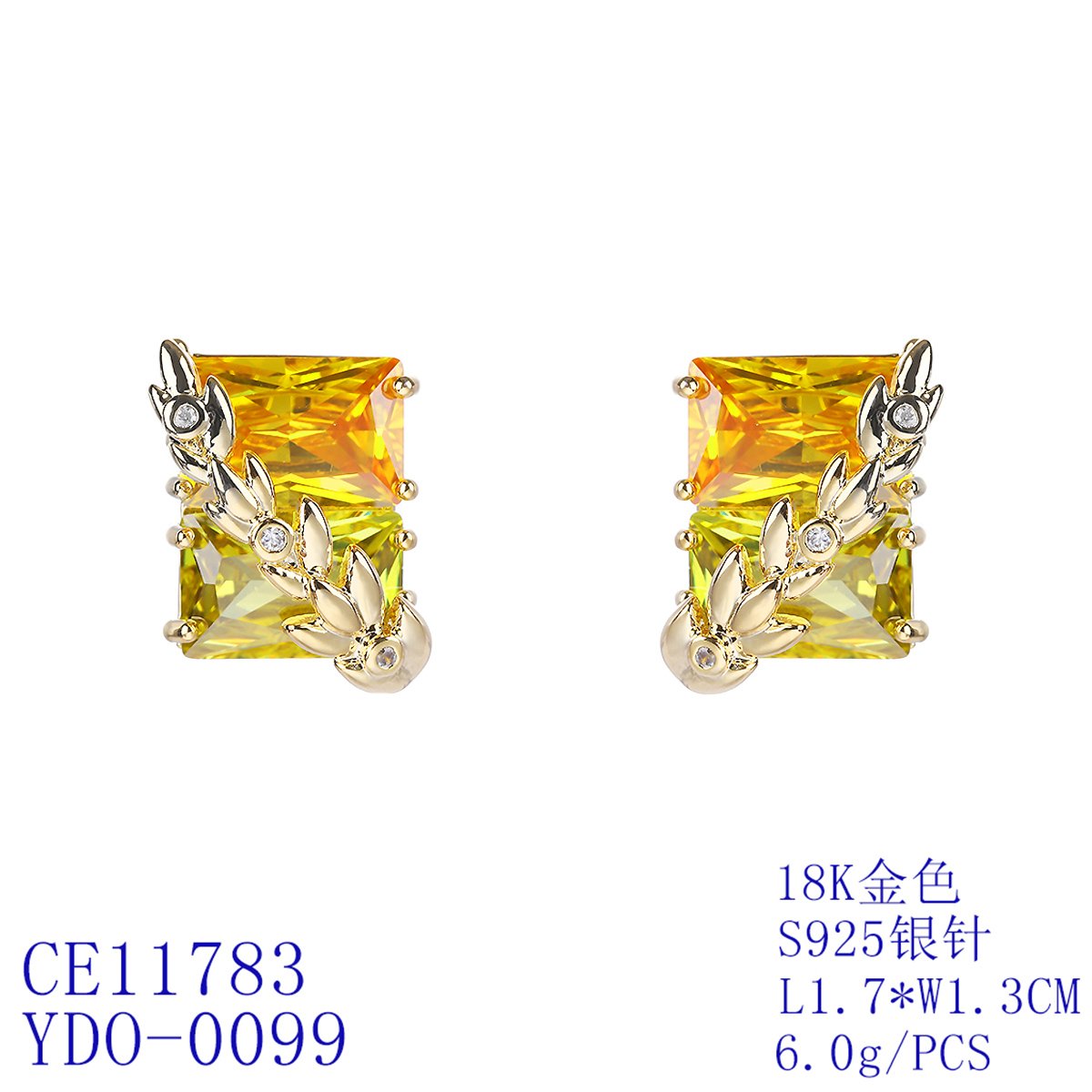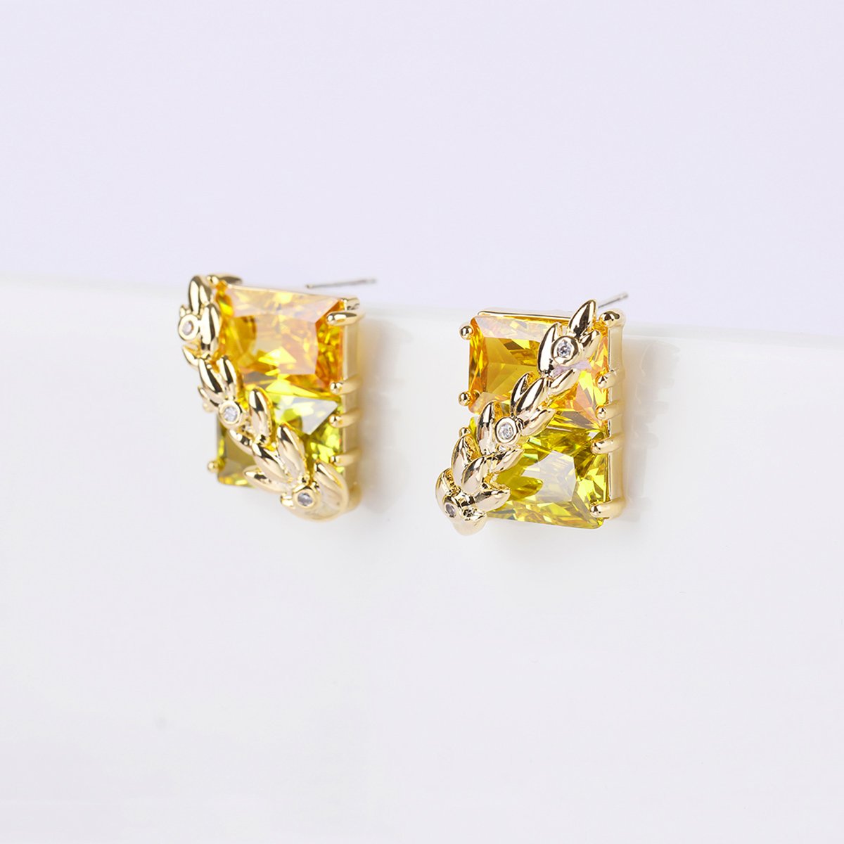 Wholesale Gold Leaf Earrings – Yellow CZ Studs