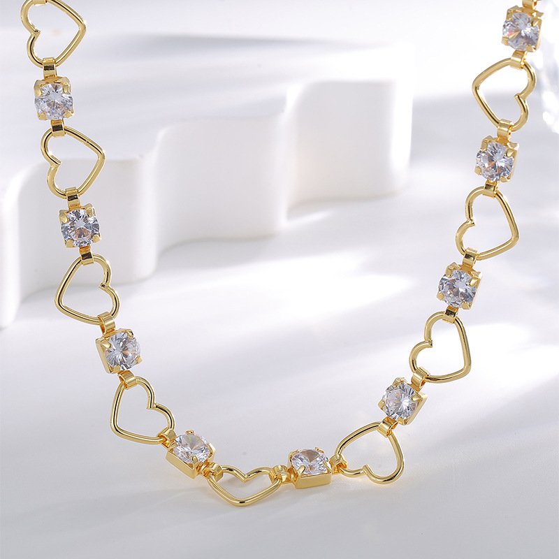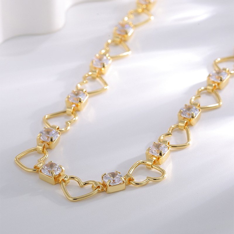 Delight your customers with our Wholesale Heart Pendant Necklace, a stunning blend of elegance and modern charm. This gold-toned necklace features a delicate open heart design, beautifully adorned with shimmering cubic zirconia stones. Crafted from high-quality brass and plated in 18K gold, it radiates a luxurious glow while remaining lightweight and comfortable for everyday wear. Ideal for boutiques and cross-border sellers seeking timeless romantic jewelry with broad appeal. With factory-direct pricing, exceptional craftsmanship, and free worldwide shipping, JuneJewelry.com ensures you get unbeatable value and premium quality for bulk orders.