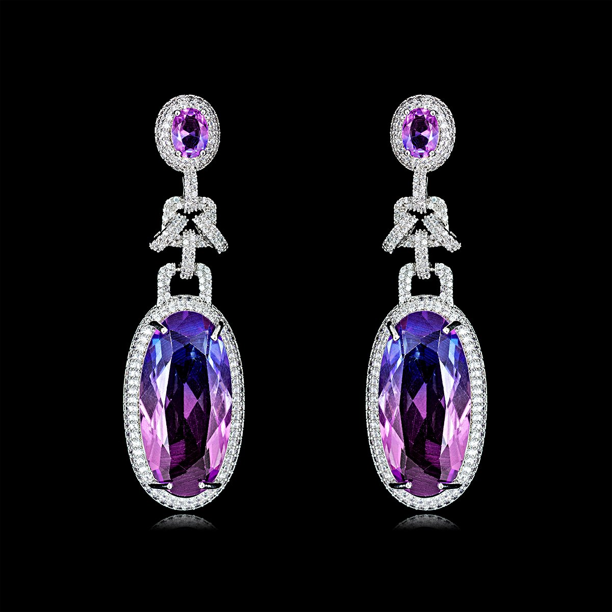 High-quality copper dangle earrings with colorful zirconia stones and S925 silver pins. Ideal for bulk wholesale orders and jewelry collections.