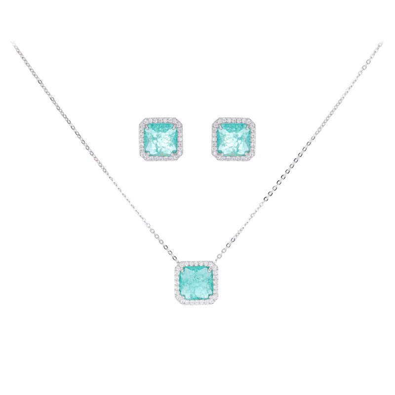 Home New Arrivals 10/25 Small CZ Jewelry Set Wholesale Ice Crack Jewelry Set – Necklace & Earrings