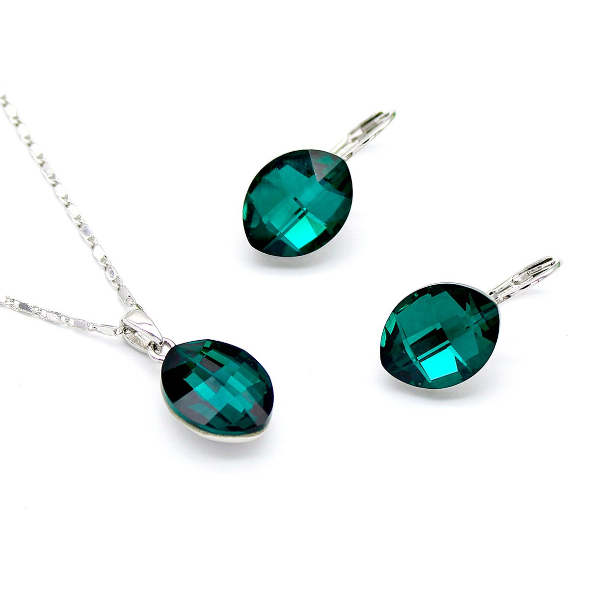 Stock the perfect blend of classic style and dazzling size with the Wholesale Large Oval Stone Jewelry set. This elegant and simple matching set features a single, prominently sized, beautifully faceted oval Swarovski Element crystal pendant and coordinating lever-back drop earrings. The sophisticated shape offers timeless appeal and an impressive sparkle, making it a reliable seller for any retailer. We provide a broad color palette (including Clear, Emerald Green, Smoky Black, and Amber) and both luxurious 18K Gold Plated and sleek White Gold Plated brass finishes. JuneJewelry.com guarantees high quality, original unique designs at incredibly competitive factory prices. Order in bulk to meet diverse customer demands and benefit from free shipping worldwide.