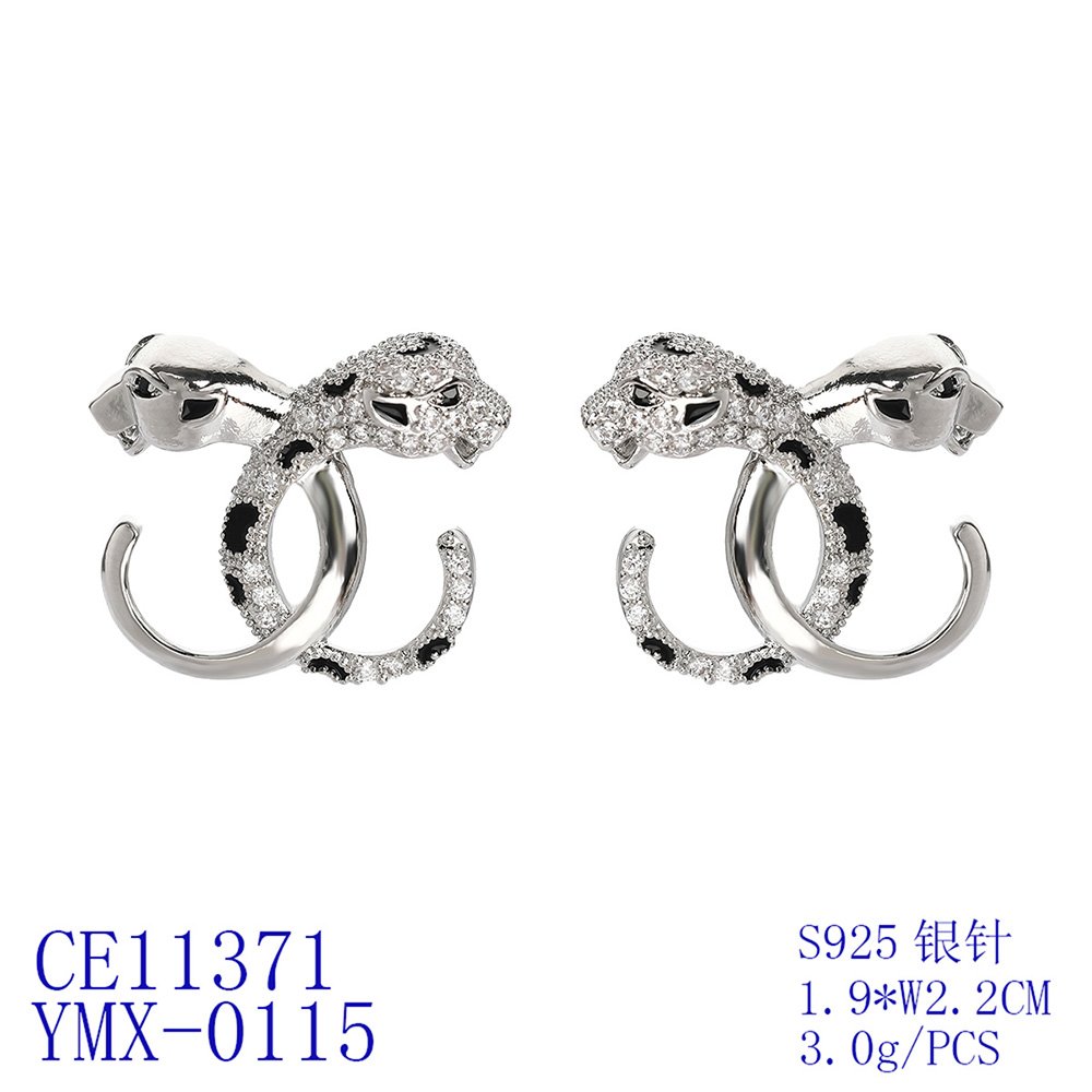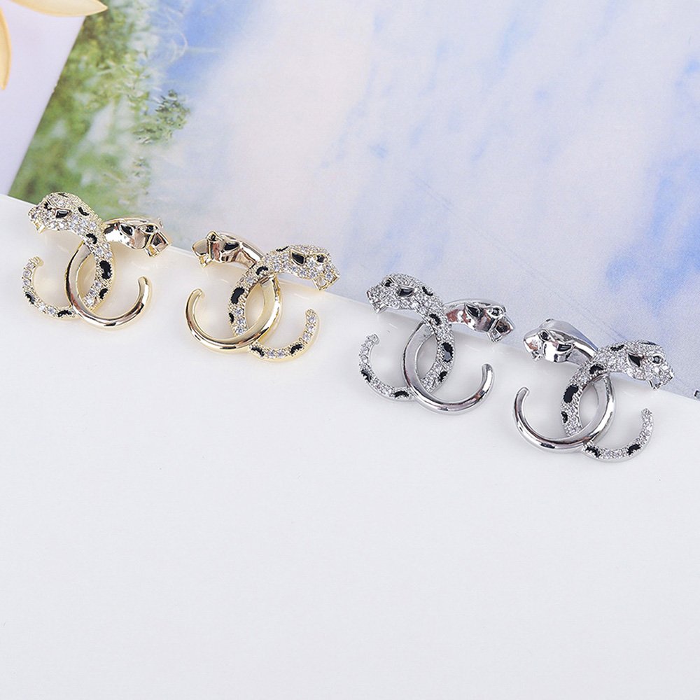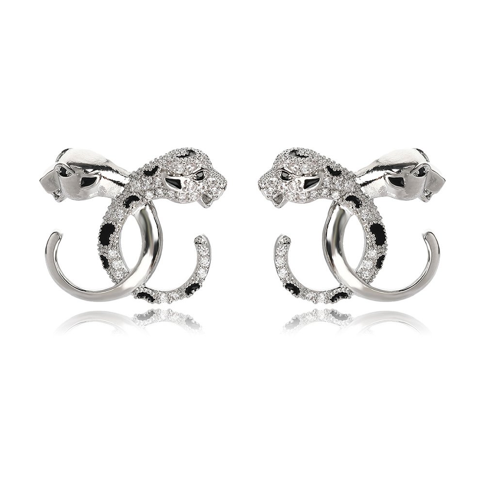 Wholesale Leopard Stud Earrings – Zircon Inlaid Silver Plated