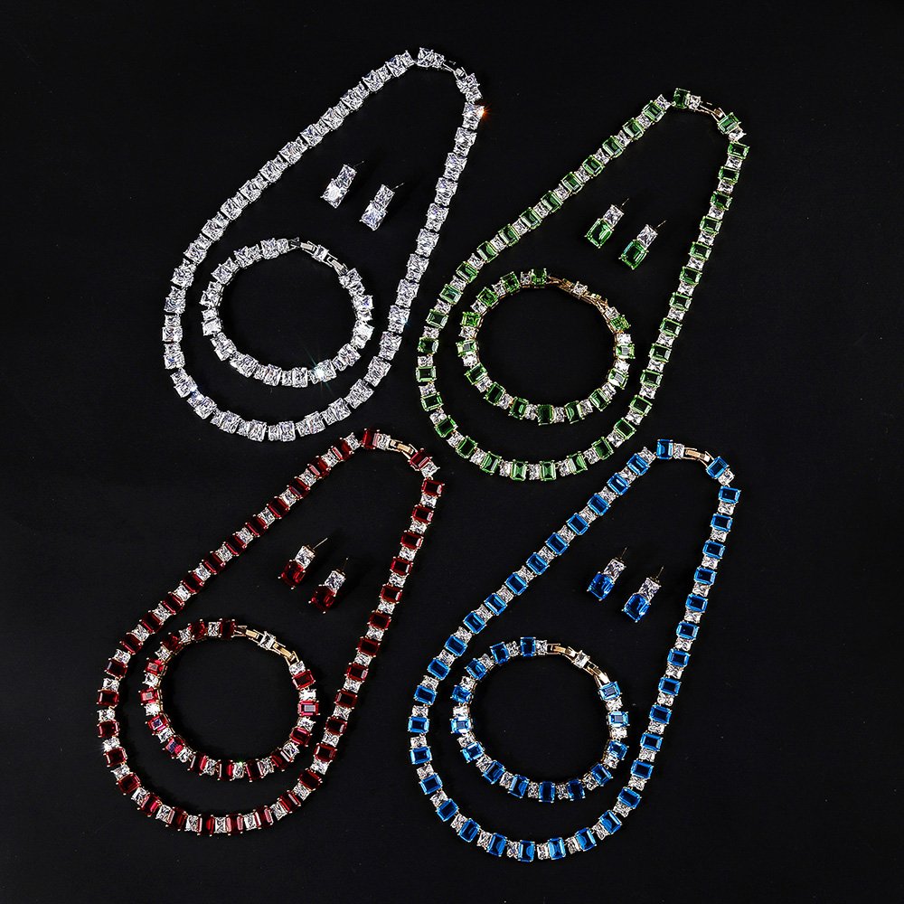 We offer free shipping on all orders to make your international sourcing process more convenient and highly cost-effective. The clean geometric lines of the emerald-cut zircons provide a sophisticated look that pairs perfectly with modern evening wear. Our Luxury Zircon Set represents the ideal combination of factory-direct value and high-end boutique appeal for jewelry sellers.