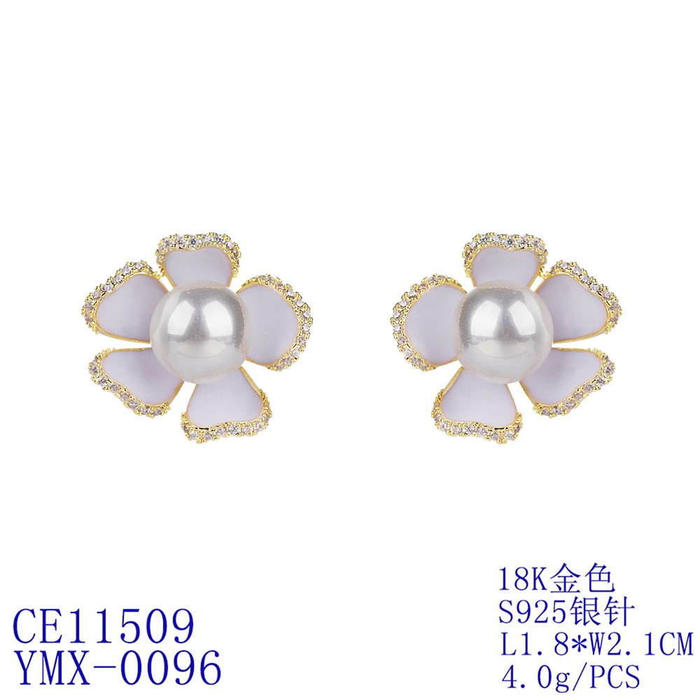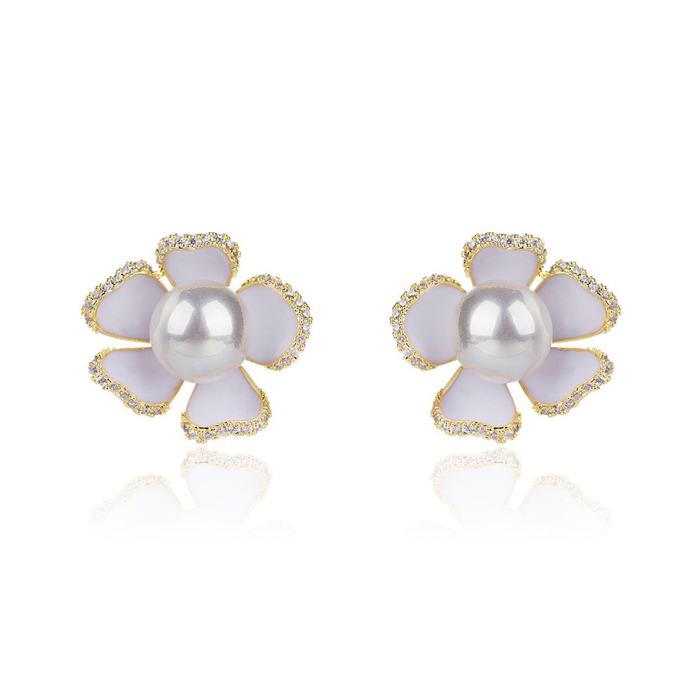 Elevate your accessory offerings with our Wholesale Pearl Flower Earrings—we have masterfully blended soft floral elegance with premium jewelry craftsmanship. These exquisite earrings feature a unique six-petal design with a delicate lavender-colored enamel finish on a durable brass base. We meticulously lined the edges of each petal with shimmering micro-pavé zircons to ensure a radiant and sophisticated glow.