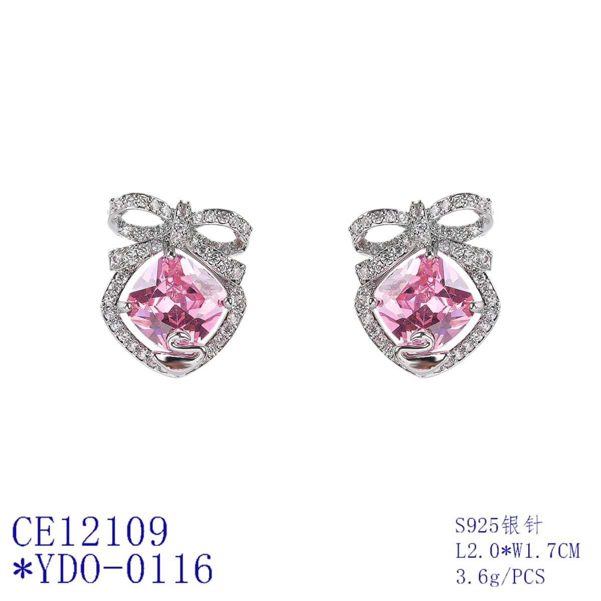Wholesale Pink Zircon Bow Earrings – 925 Silver Needle