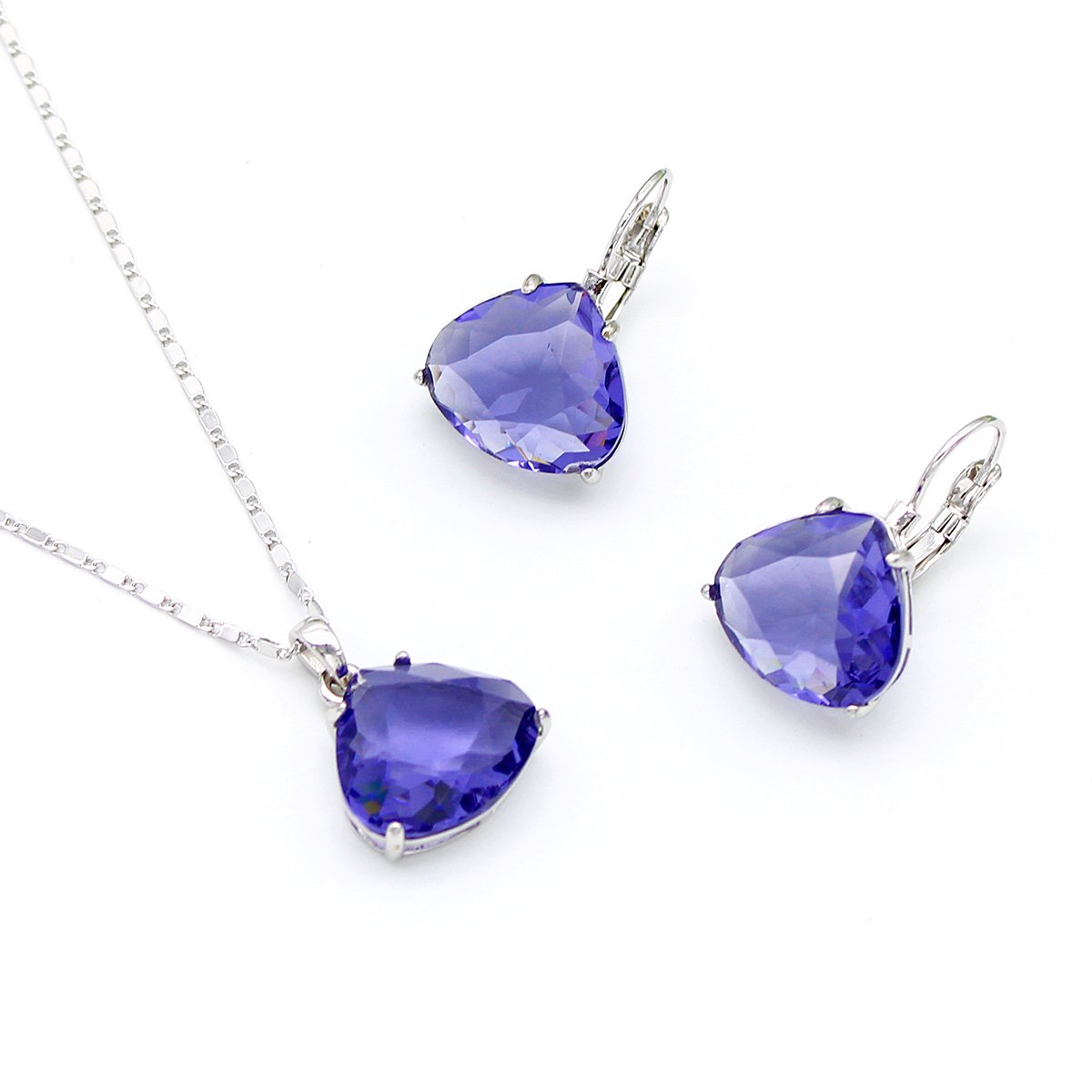 Introduce a touch of romantic luxury to your collection with the Wholesale Purple Crystal Heart Jewelry Set. This simple yet striking matching set features a stunning deep purple (resembling Tanzanite or Amethyst) heart-shaped Swarovski Element crystal pendant and coordinating lever-back drop earrings. The vibrant single-stone design is set in durable brass, plated with 18K white gold for a brilliant, anti-tarnish finish. Ideal for gift shops, fashion boutiques, and online retailers, this set offers a unique blend of high style and simple elegance. We guarantee high quality, unique original designs, and competitive factory prices for all bulk orders. Maximize your profits and attract customers who love bold color and refined simplicity. Partner with JuneJewelry.com and enjoy free shipping on your wholesale fashion jewelry purchases.