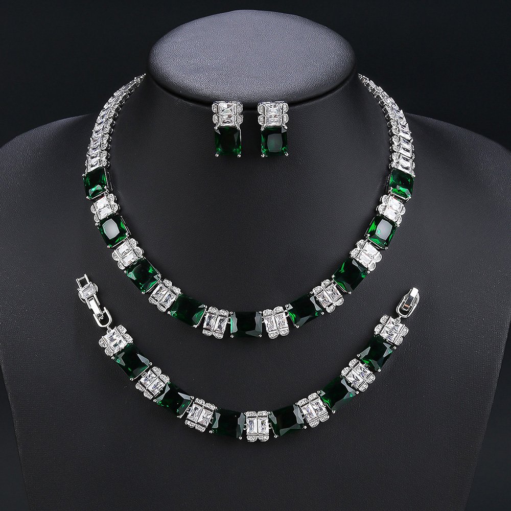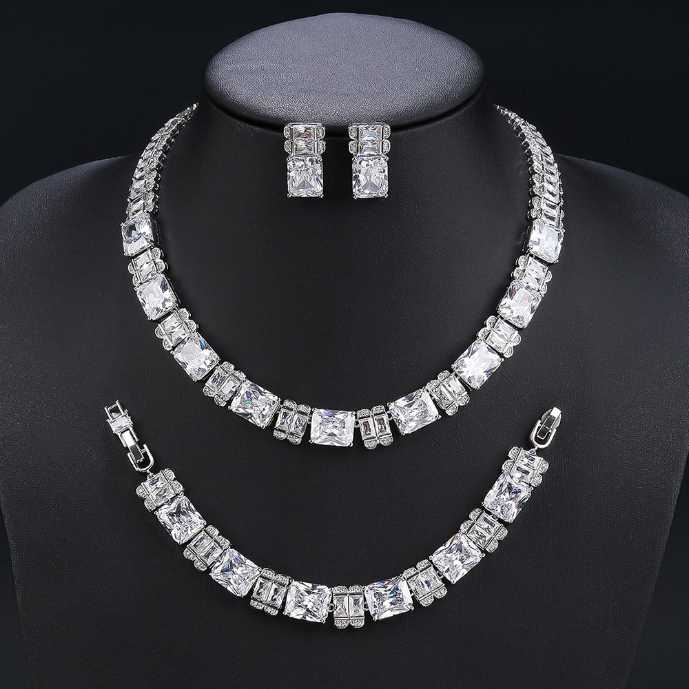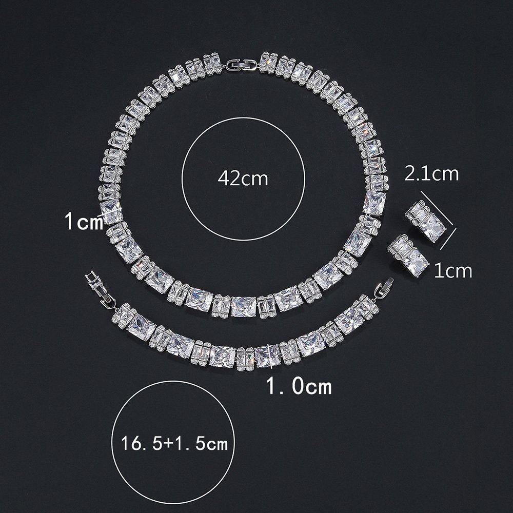 Wholesale Radiant Zircon Set offers a breathtaking aesthetic that combines modern luxury with timeless bridal elegance for global retailers. We manufacture this high-quality jewelry ensemble using a premium copper base and thick real gold plating for lasting brilliance. Each piece features a continuous row of brilliant emerald-cut zircon stones that sparkle intensely under any light source.