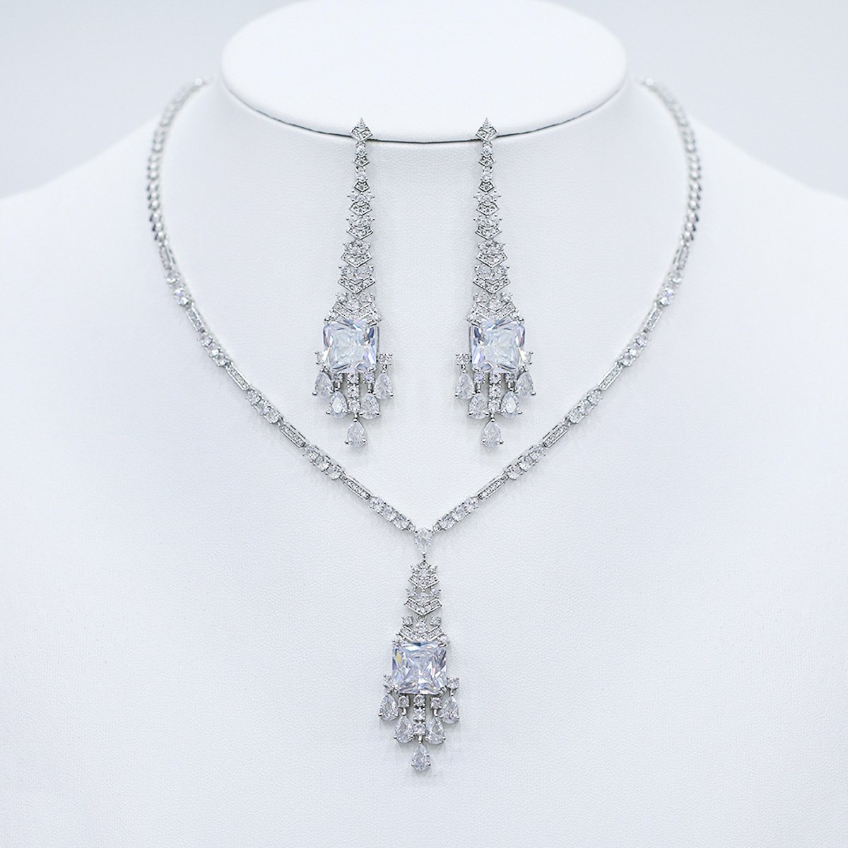 Wholesale Marquise and Rectangular drop necklace and earring set with platinum plating from JuneJewelry.com – unique copper fashion jewelry for bulk orders.