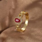 Wholesale Red Zircon Ring – Elegant 18K Gold Plated
