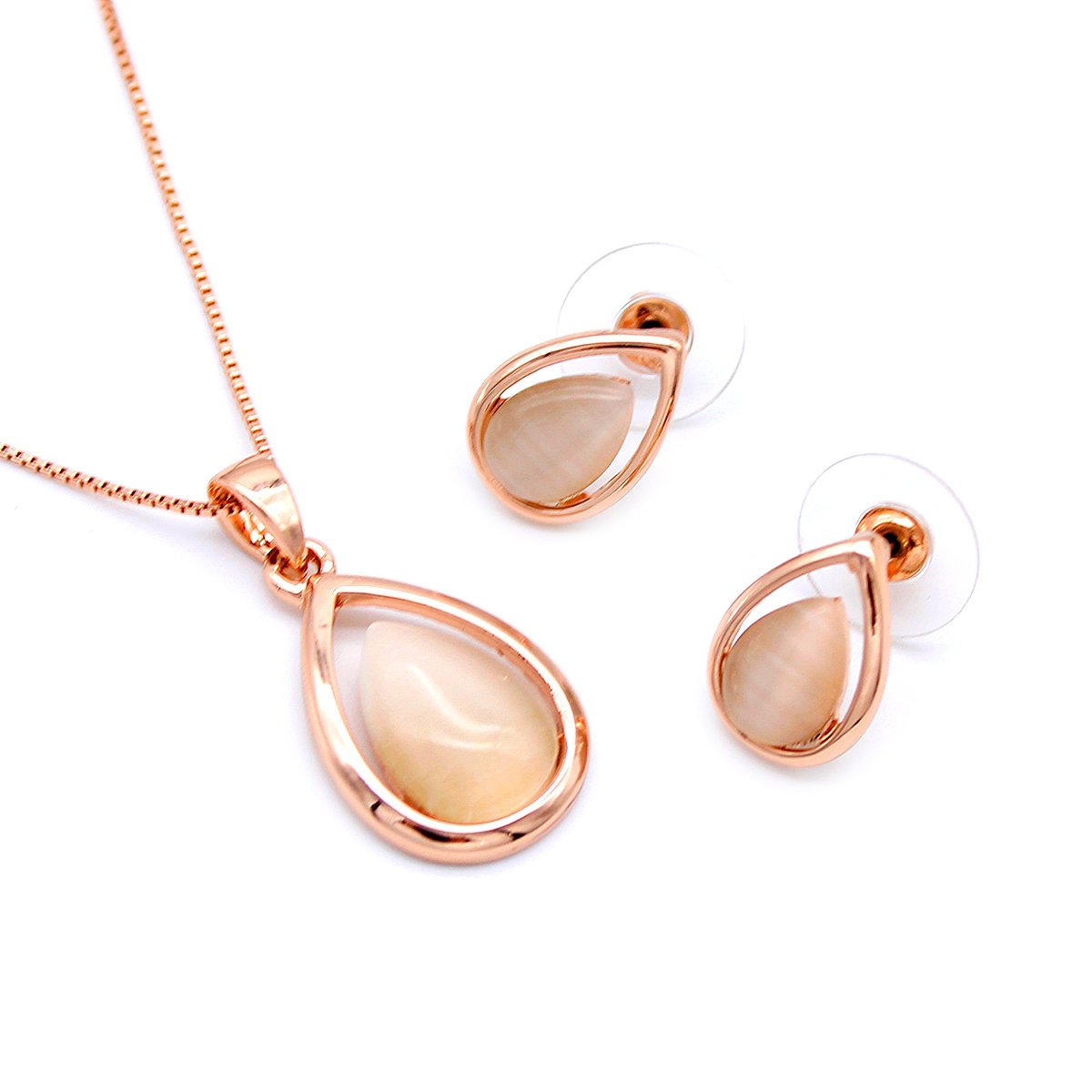Wholesale Rose Gold Teardrop Set – Cat Eye Stone
