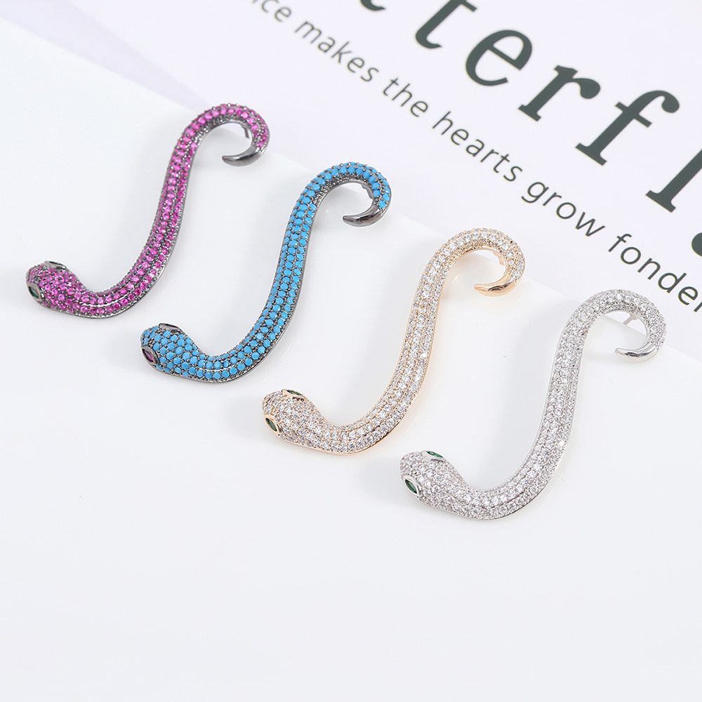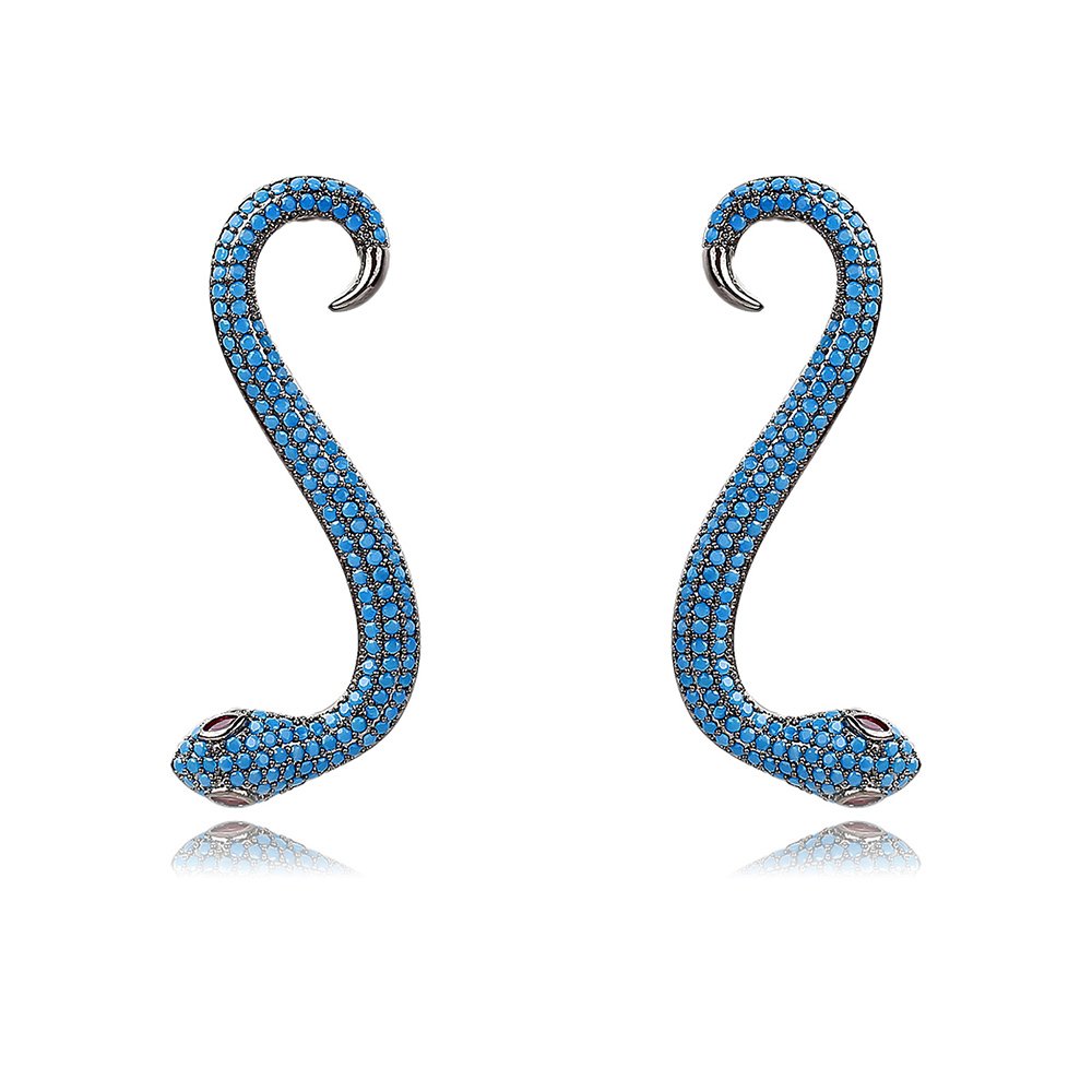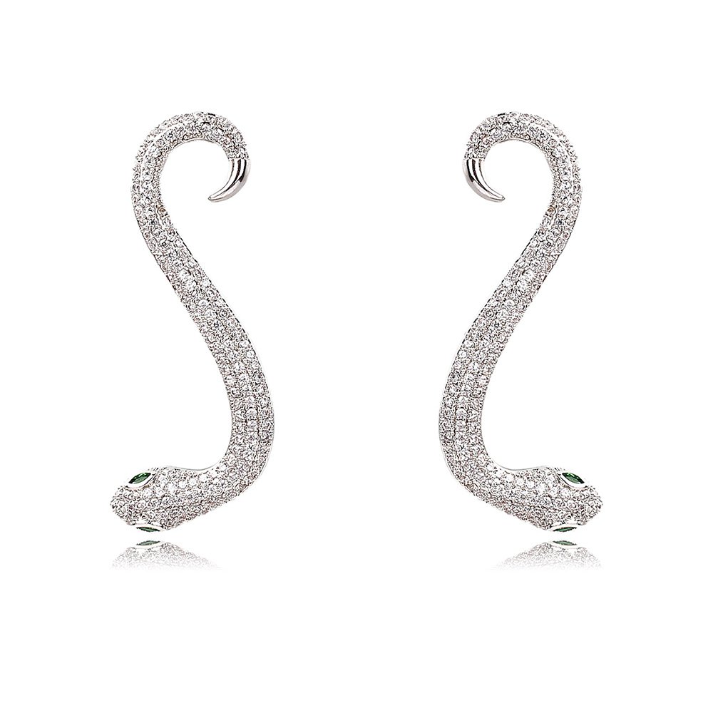 Wholesale Snake Earrings from JuneJewelry.com offer a bold blend of high fashion and exceptional craftsmanship for your retail collection. We design these unique serpent-shaped accessories with premium copper and coat them in high-quality real gold plating. Brilliant white zircon stones cover the entire body to create a stunning, luxurious shimmer that attracts every eye.