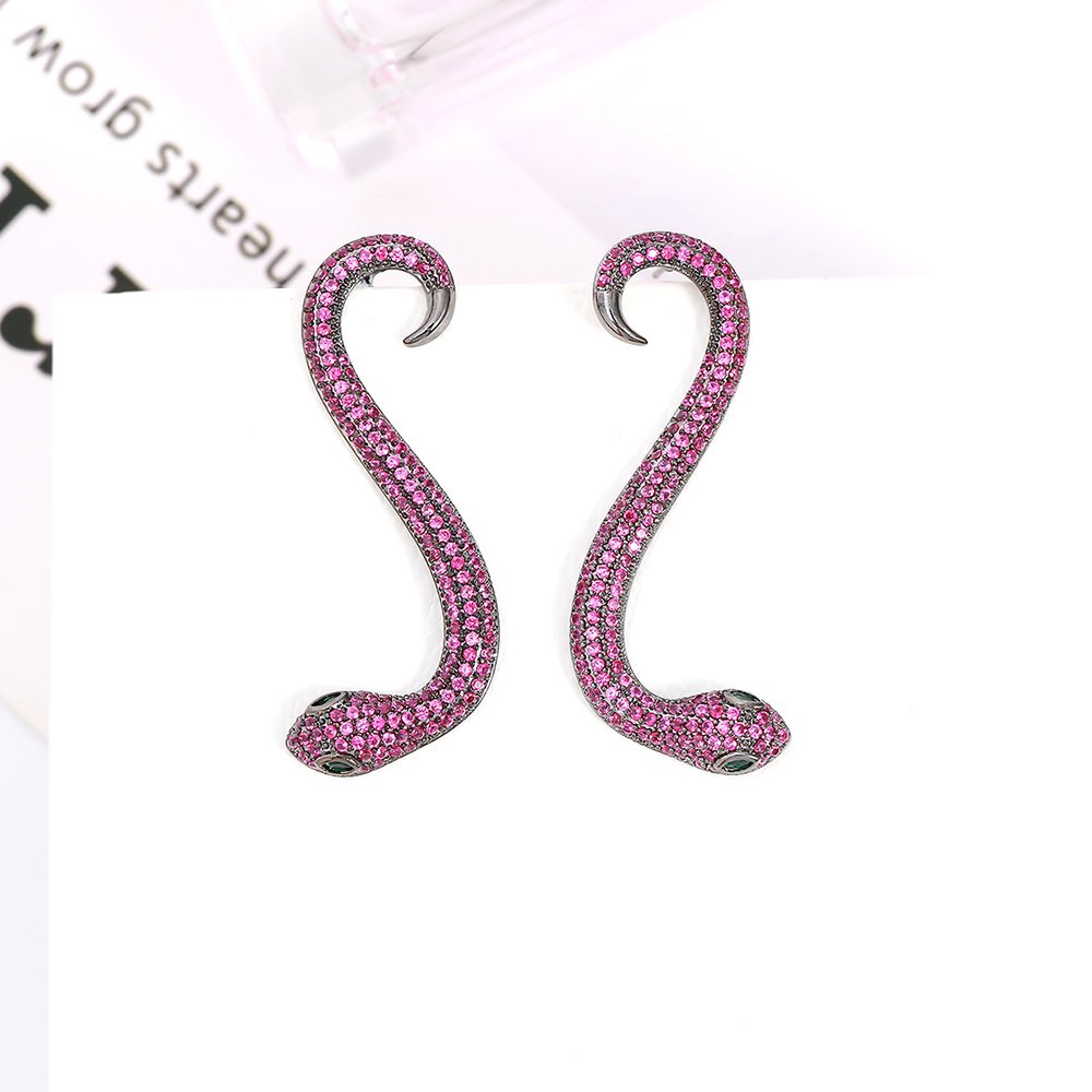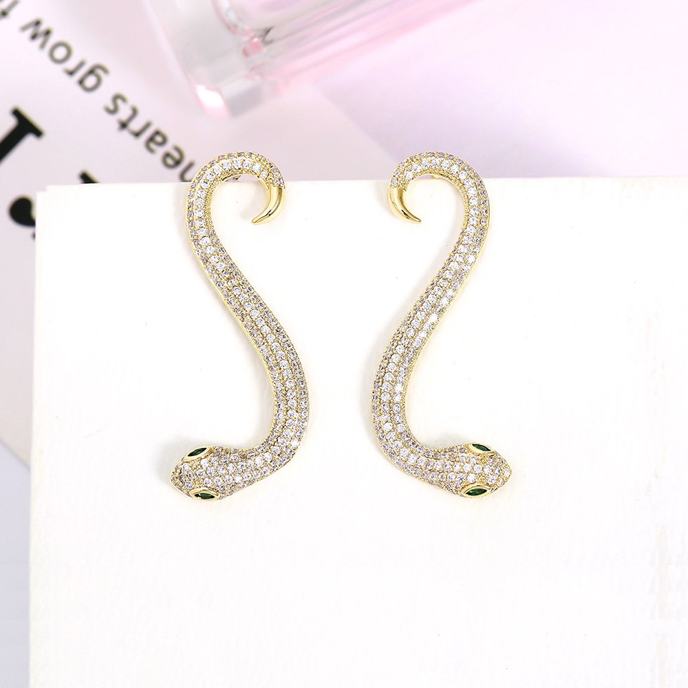 Wholesale Snake Earrings – Zircon Inlaid Gold Plated Copper