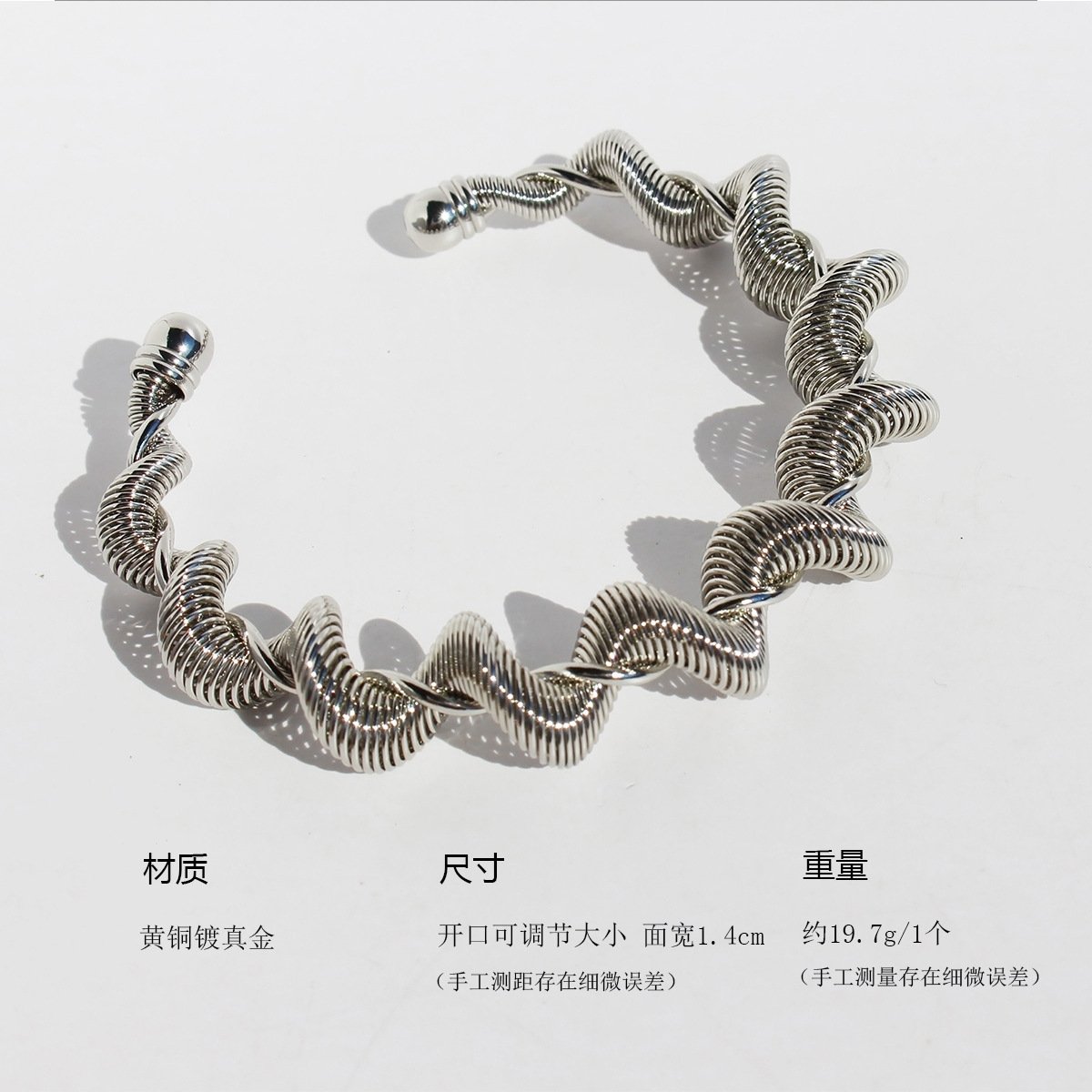 Embrace bold, edgy fashion with our Wholesale Spiral Cuff Bracelet, a must-have statement piece for trend-forward collections. This open cuff features a twisted wave and spring coil design, perfectly capturing the Y2K-inspired hot girl aesthetic. Made from high-quality brass and plated in your choice of luxurious 18K gold or platinum, it’s ideal for boutiques, fashion retailers, and cross-border eCommerce shops. The flexible fit and sculptural texture make this bracelet a favorite for Gen Z and modern trendsetters. Enjoy factory pricing, premium quality, and free worldwide shipping with every wholesale order at JuneJewelry.com.