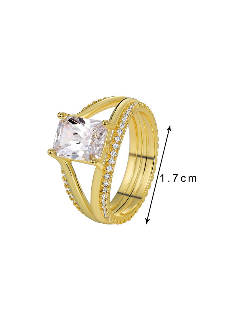 Wholesale minimalist square zircon ring for women in 18K gold plated brass – fashion jewelry from JuneJewelry.com.