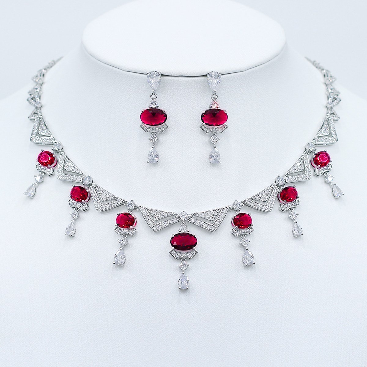 Wholesale Statement Zircon Necklace Set – Platinum Plated