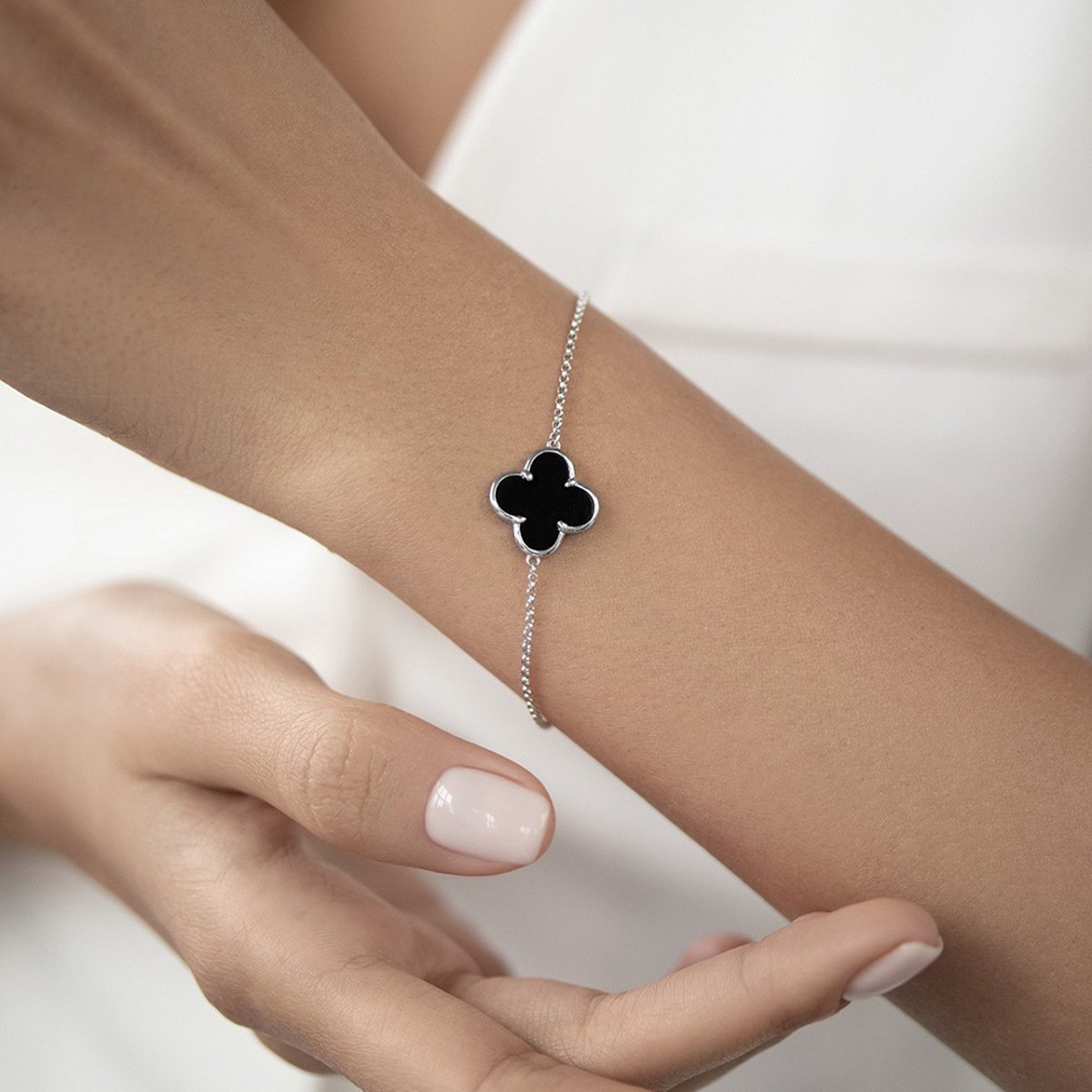 Introduce elegance and luck with our Wholesale Sterling Silver Clover Jewelry Set, a 4-piece collection featuring a necklace, bracelet, earrings, ring — each showcasing a striking black onyx four-leaf clover motif. Crafted from genuine 925 sterling silver and coated with triple-layer vacuum platinum plating, this set offers long-lasting brilliance and tarnish resistance. Designed with minimalist ins-style aesthetics and symbolic charm, it’s ideal for boutiques, fashion gift shops, and cross-border eCommerce platforms. Backed by factory-direct pricing, free worldwide shipping, and exclusive craftsmanship, JuneJewelry.com brings premium wholesale silver jewelry to stylish resellers around the world.