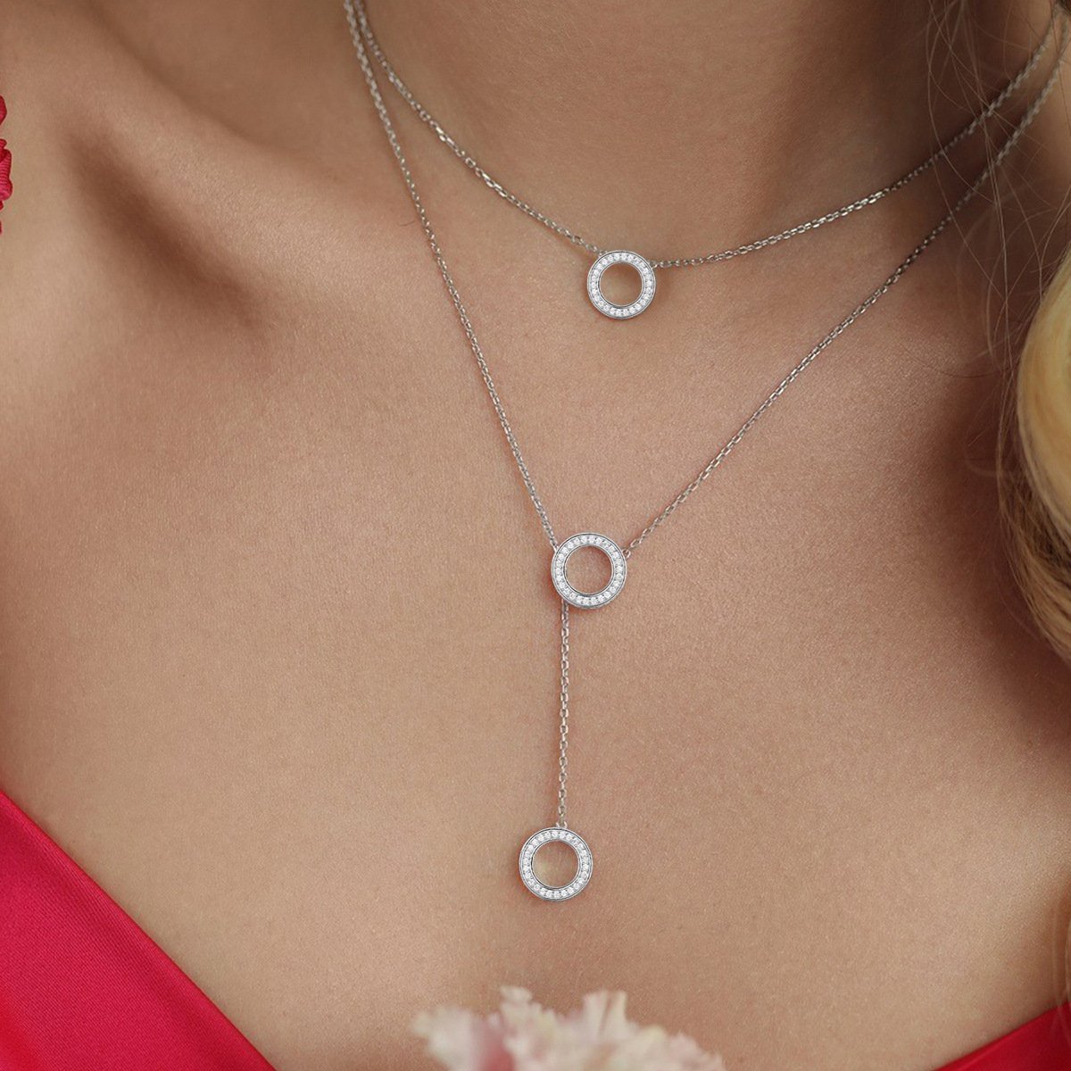 Introduce refined modernism with our Wholesale Sterling Silver Geometric Necklace, a long-line pendant piece designed with a minimalistic circular shape and micro zircon inlay. Made of genuine 925 sterling silver and finished with triple-layer vacuum platinum plating, this necklace ensures lasting shine, color retention, and skin-friendly quality. The unique blend of geometry and elegance makes it an ideal choice for boutiques, eCommerce jewelry platforms, and cross-border fashion sellers seeking small-batch luxury with wide-market appeal. Offered at factory-direct prices with free global shipping, this piece adds understated sophistication to any collection – exclusively at JuneJewelry.com.