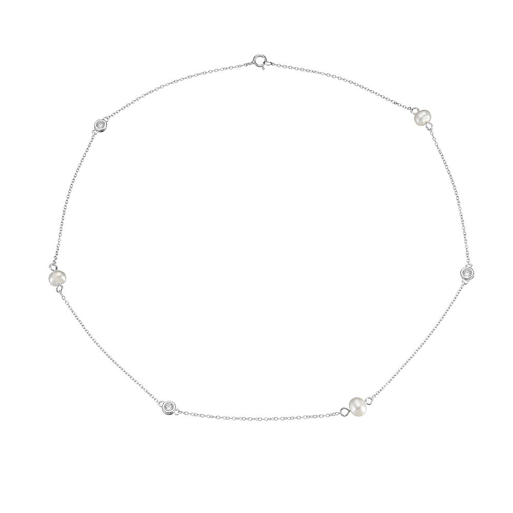 Wholesale Sterling Silver Pearl Choker Necklace – Zircon