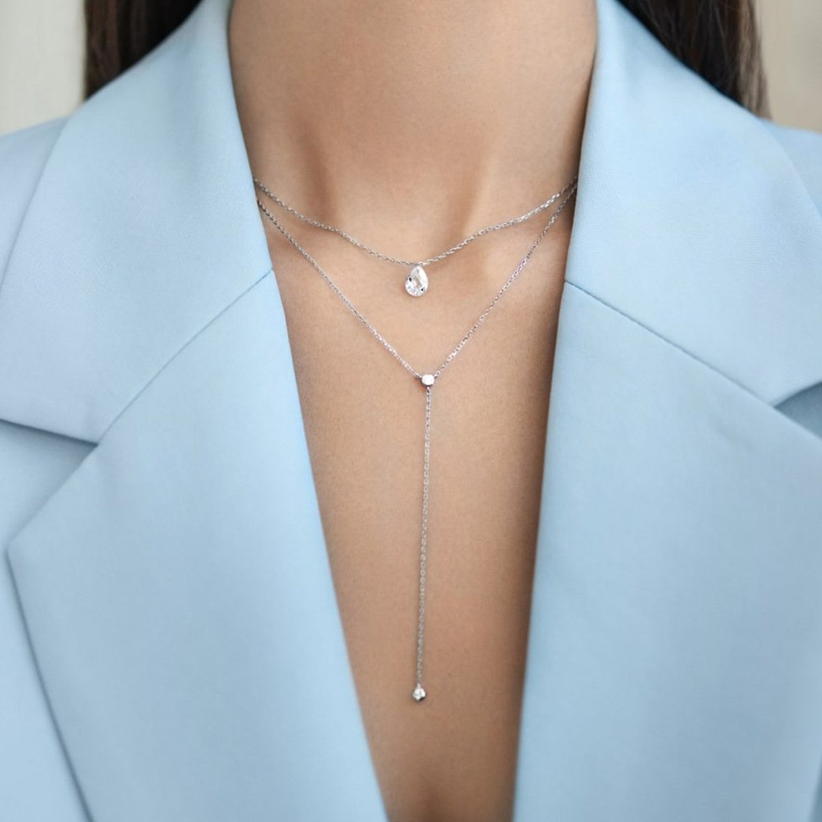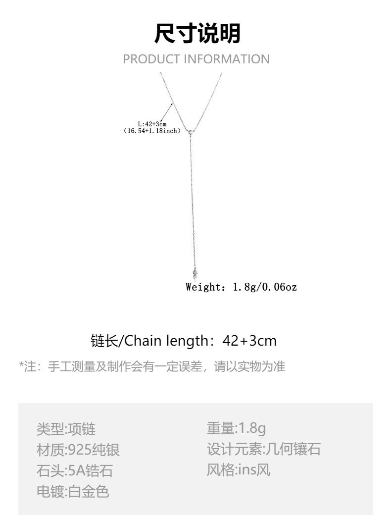 Elevate your wholesale jewelry line with our Wholesale Sterling Silver Y Necklace, a sleek and elegant long-chain piece perfect for modern fashion boutiques. This Y-shaped pendant necklace is crafted from genuine 925 sterling silver and finished with triple-layer platinum vacuum plating for exceptional brilliance and durability. Adorned with precision-cut zircon stones, it delivers a refined sparkle ideal for fashion-forward customers. Its minimalist ins-style silhouette and extended drop design offer versatile wear for both casual and formal settings. Perfect for online stores, retail chains, and international resellers. Benefit from factory-direct pricing, premium craftsmanship, and free worldwide shipping exclusively at JuneJewelry.com.