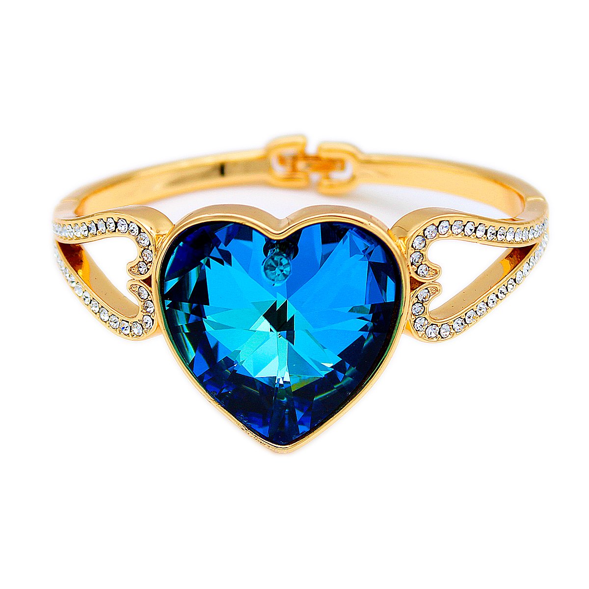 Wholesale Swarovski Element Heart Bangle – Blue Crystal