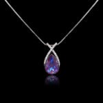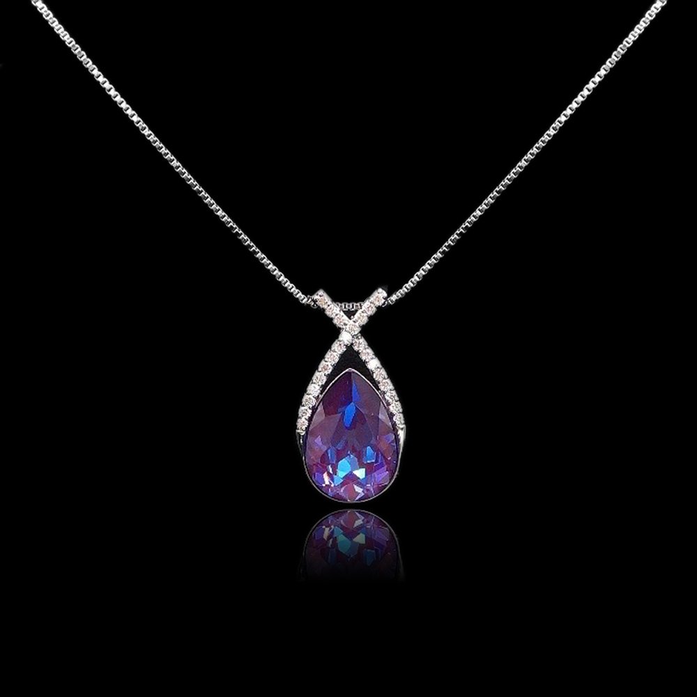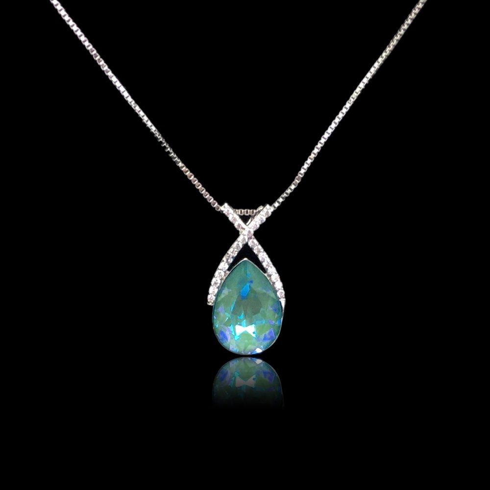 This eye-catching Swarovski element necklace, featuring teardrop stones on platinum-plated copper, delivers a luxurious, sparkling accessory for everyday and event wear. Available at factory pricing with no MOQ and free shipping worldwide.