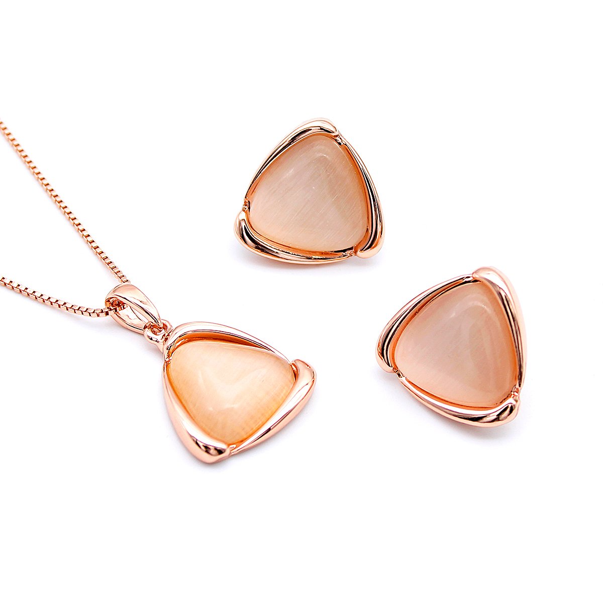 Wholesale Triangle Cat Eye Jewelry Set – Rose Gold Plated