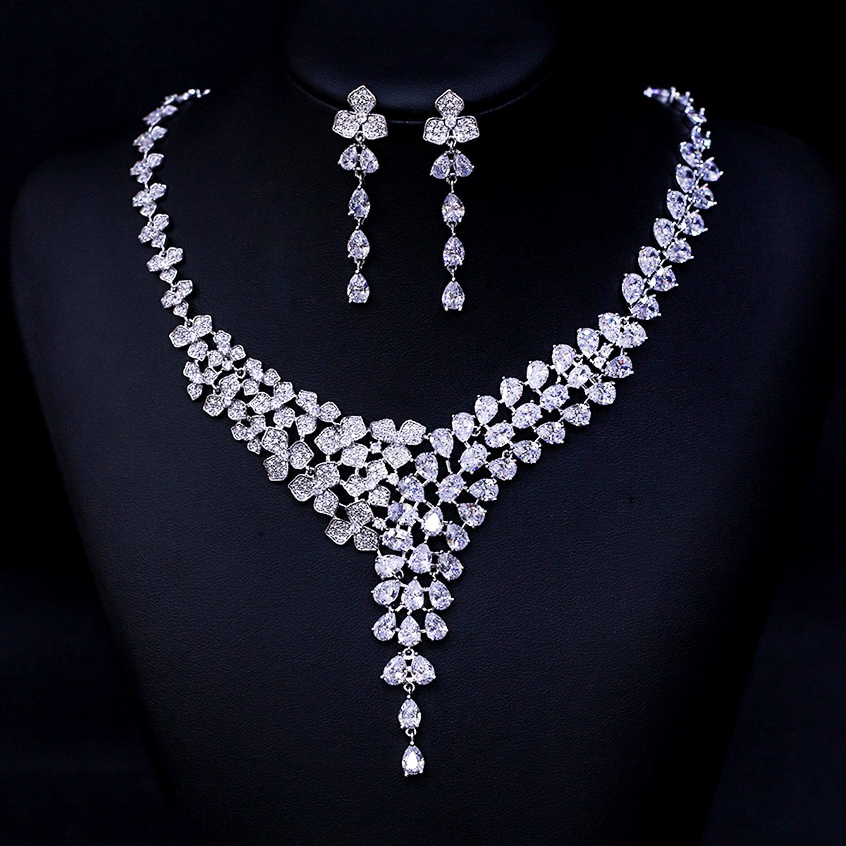 Wholesale V-Shape Zircon Necklace Set – Platinum Plated