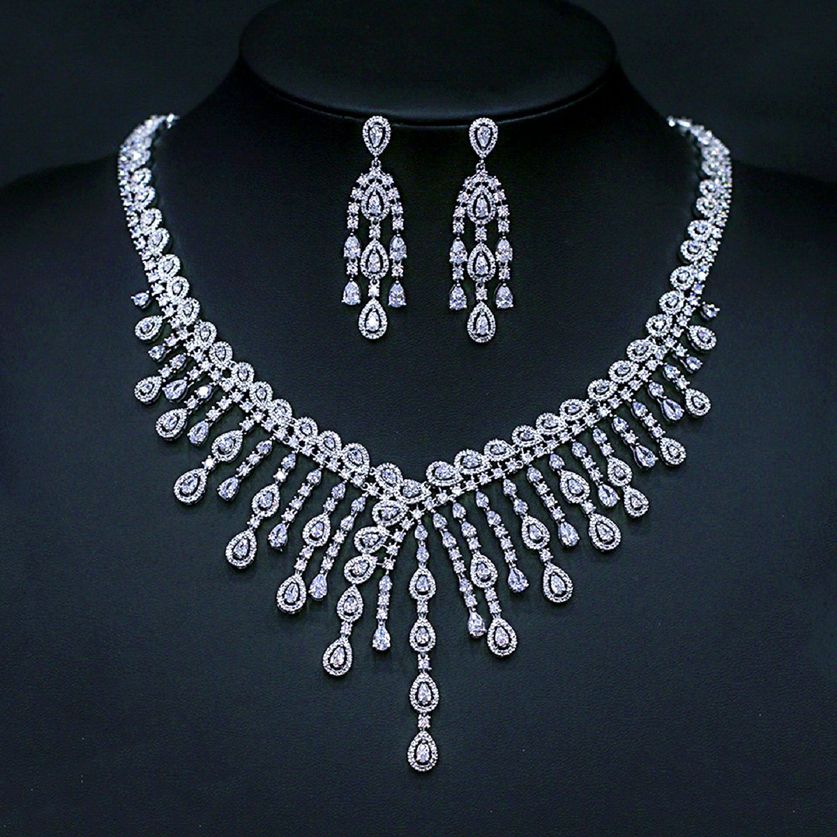 Elevate your inventory with our breathtaking Wholesale White Cubic Zirconia Dangle Set, a show-stopping addition to your fashion jewelry collection at JuneJewelry.com. This exquisite 2-piece set features a stunning necklace and matching earrings, both adorned with brilliant cubic zirconia stones in a captivating dangle design, creating the dazzling allure of a bridal diamond necklace and earrings. Perfect for weddings, formal events, and special occasions, this set will instantly captivate your customers. Crafted from high-quality copper and meticulously plated with platinum, these pieces offer exceptional sparkle and durability, mimicking the brilliance of genuine diamonds. As a leading fashion jewelry wholesaler, we offer original and unique designs directly from the factory, ensuring unbeatable value and high-profit margins for your business. Attract a discerning clientele looking for luxurious yet affordable wedding and party jewelry. Benefit from our free worldwide shipping.