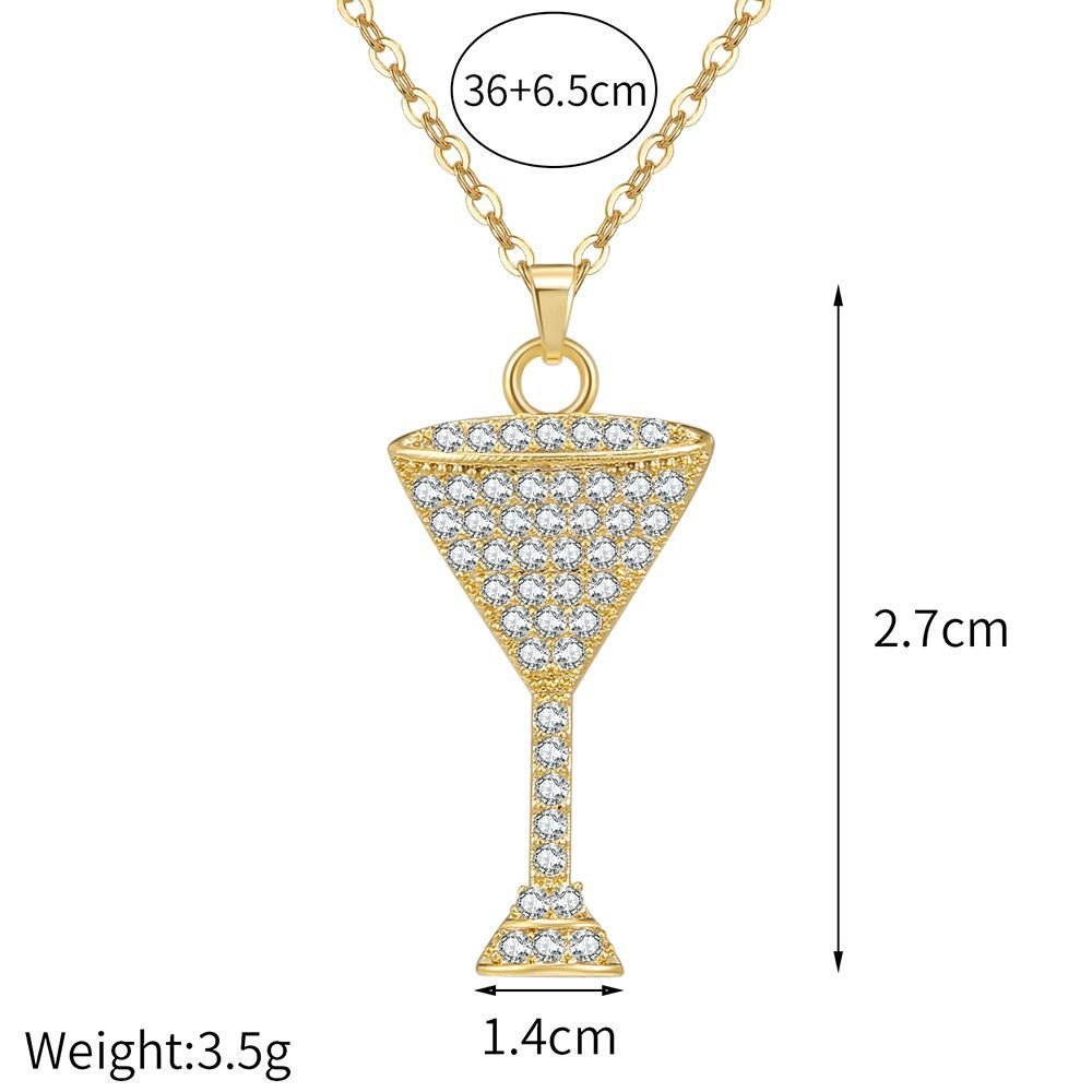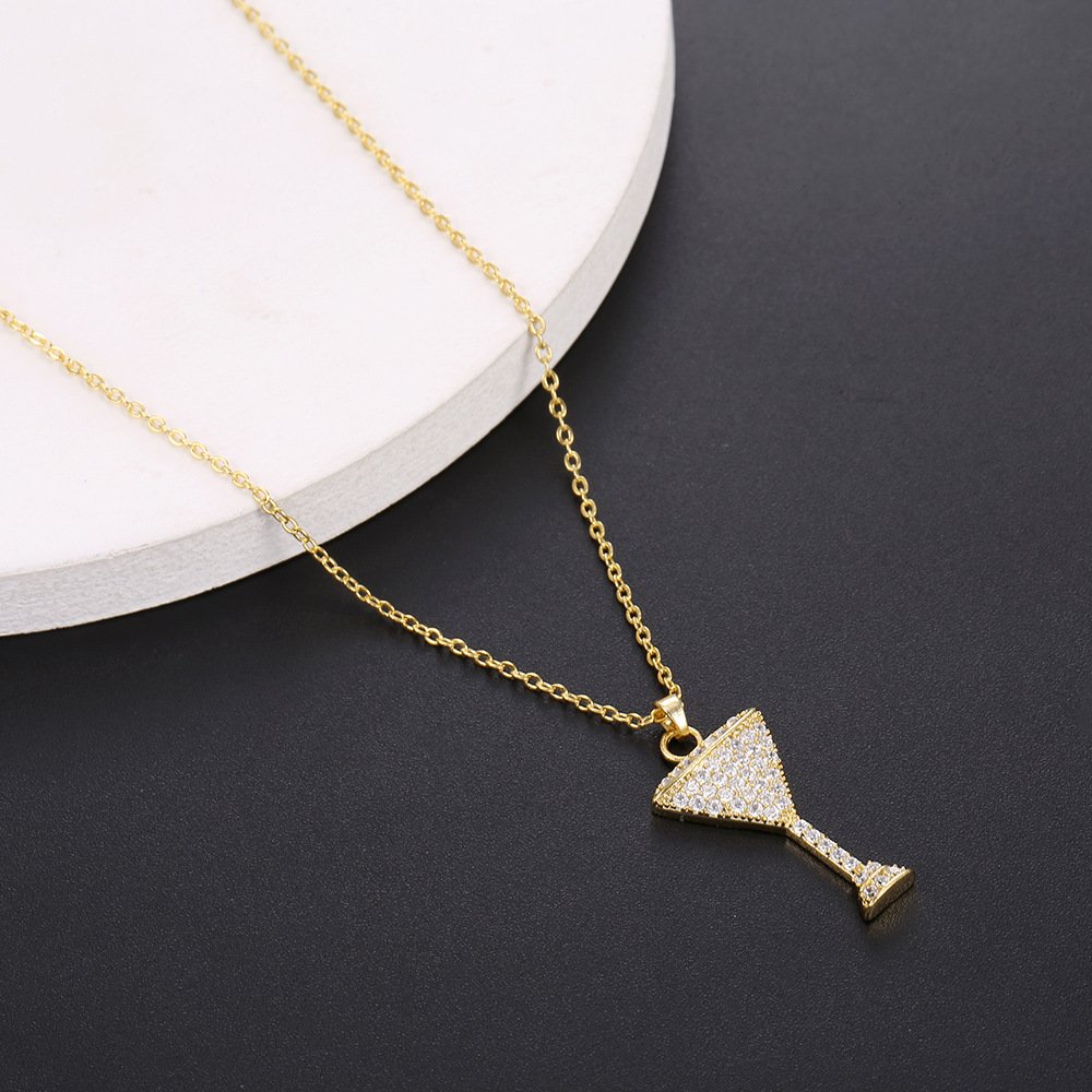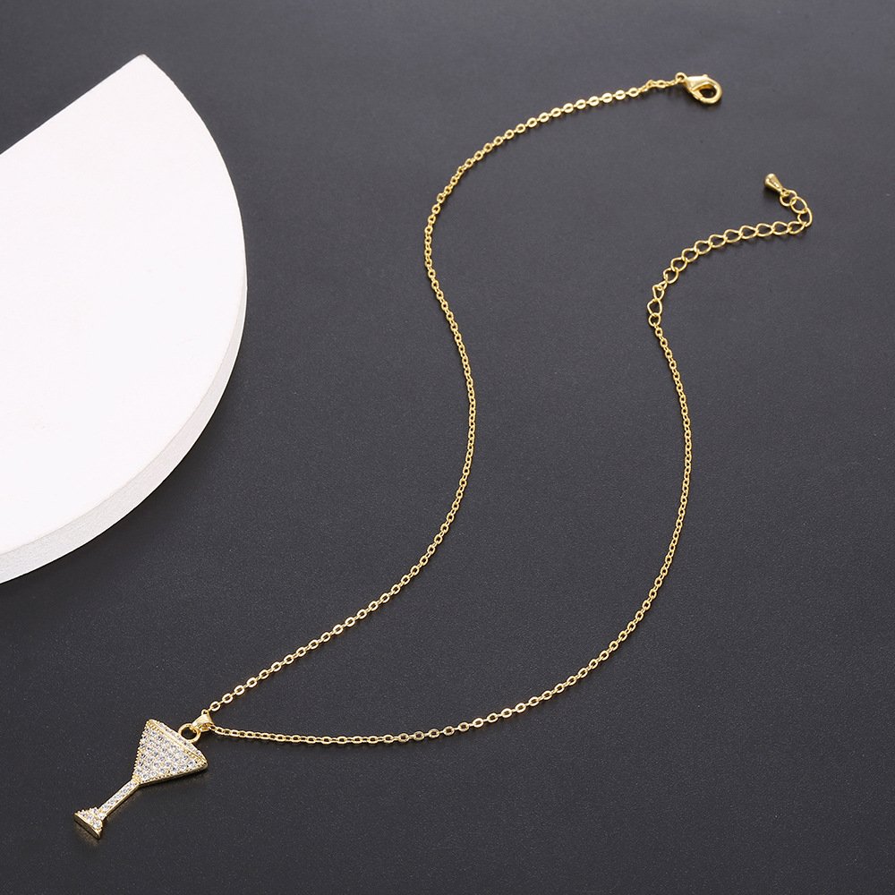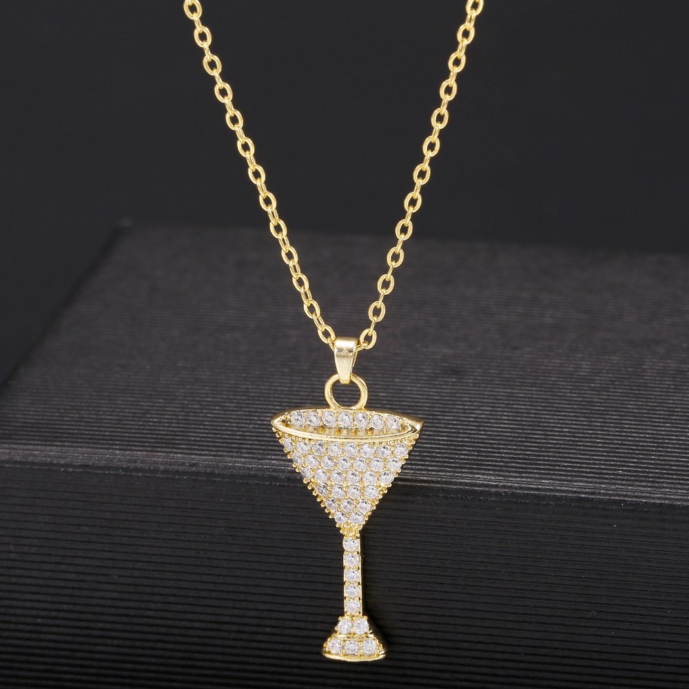 Discover our Wholesale Wine Glass Pendant Necklace, featuring a high-stem wine glass shape adorned with genuine zircon crystals for maximum sparkle.The pendant is plated in lustrous 18k gold over durable copper, ensuring both elegance and long-lasting wear. Designed in a chic Ins-style long chain, it’s perfect for holiday gatherings, weddings, and daily outfits, making it a versatile must-have in any wholesale collection. Offered at unbeatable factory-direct prices with free shipping on bulk orders, this original and eye-catching piece will drive traffic and boost sales for fashion jewelry retailers on junejewelry.com