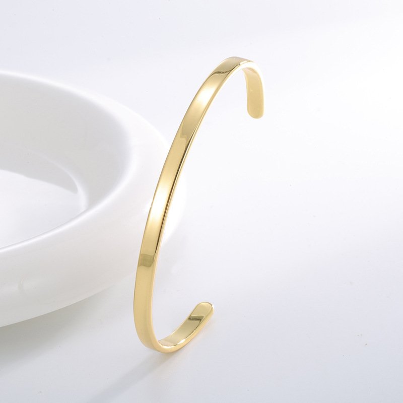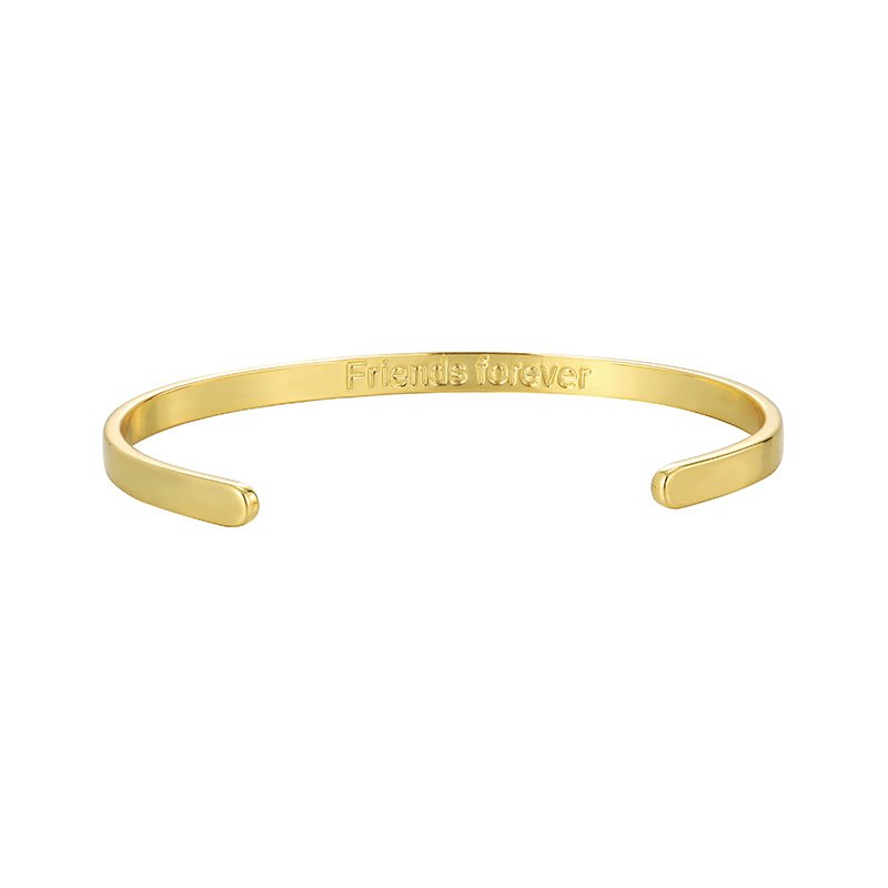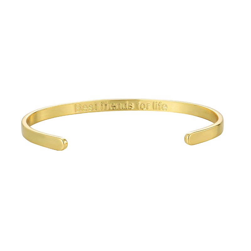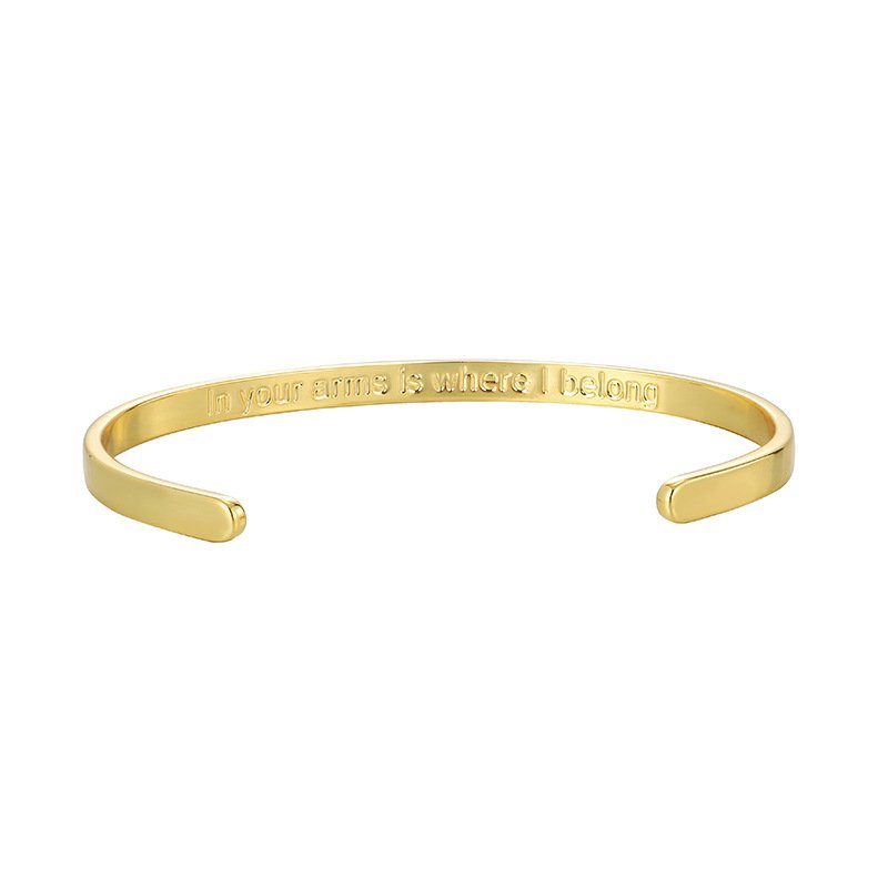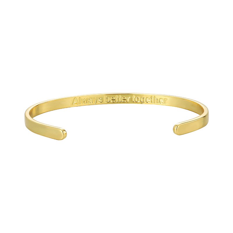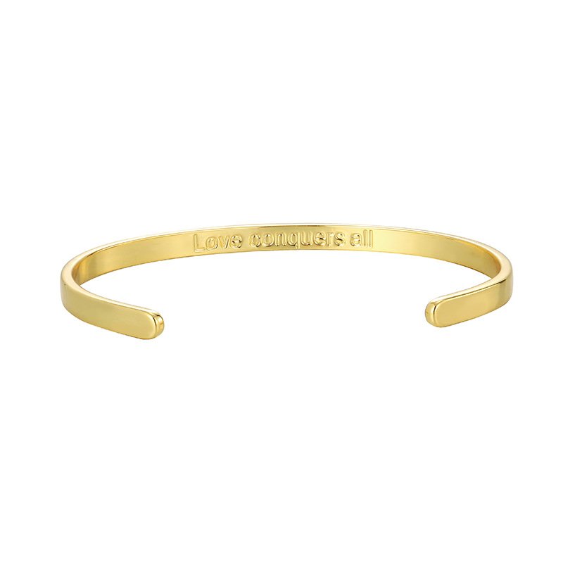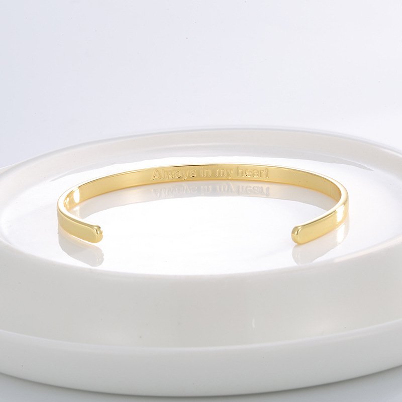 Discover our Wholesale Wishes Cuff Bracelet. This minimalist, European-style open cuff design, crafted from 14K gold plated copper, features 18 different engraved good words message options. This chic and adjustable bracelet adds a touch of personalized inspiration to any outfit.