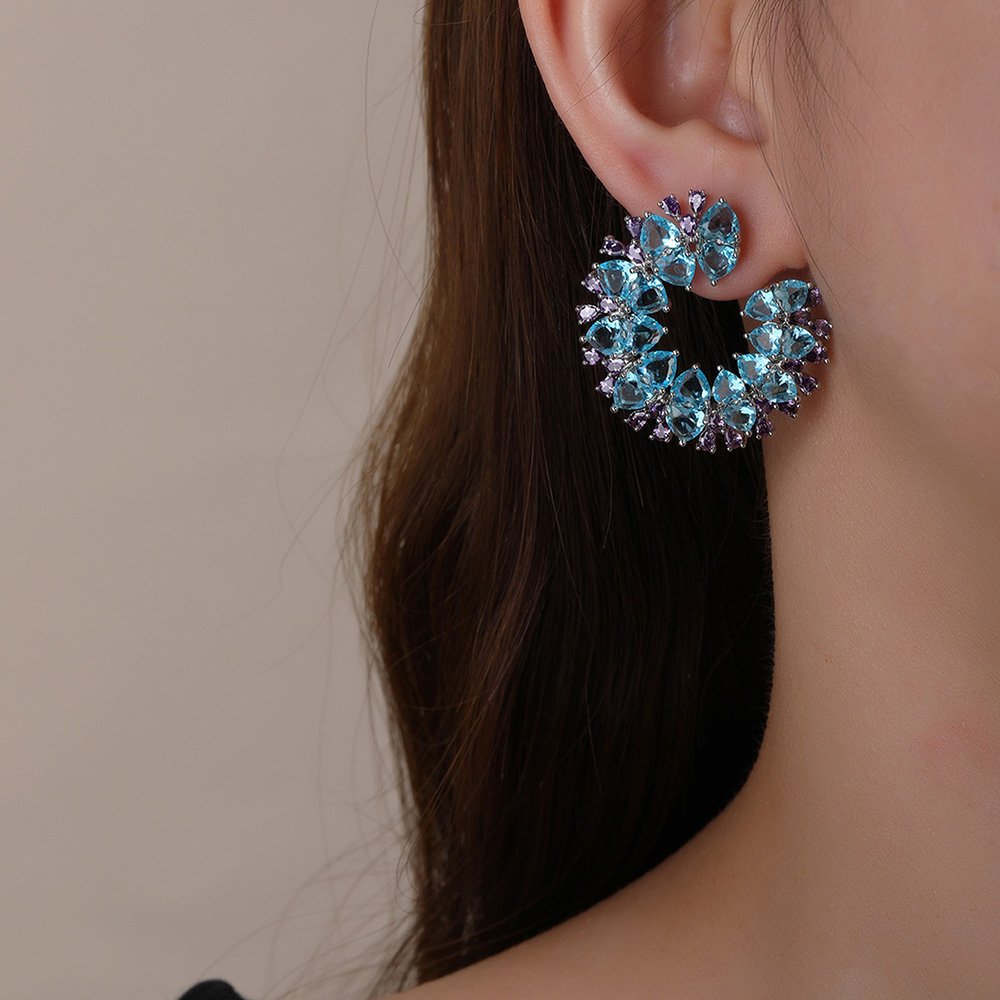 Discover our stunning copper earrings featuring colorful zircon stones. Perfect for any occasion, these high-end pieces come with durable S925 silver needles. Ideal for wholesale purchases!