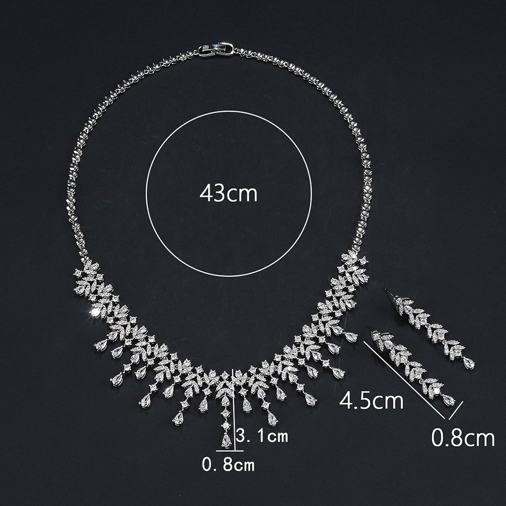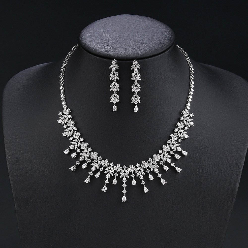 Wholesale zircon jewelry set with platinum plated copper and brilliant marquise stones from JuneJewelry.com – luxury bridal accessories for bulk orders.