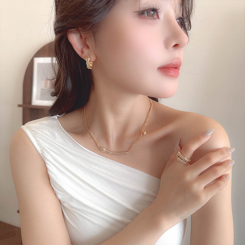 Zircon Snake Jewelry Set | Light Luxury White Gold Plated Serpent