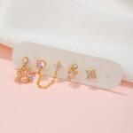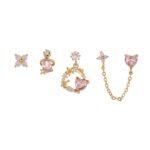 Pink Zirconia flower heart drop stud earrings set wholesale Factory
