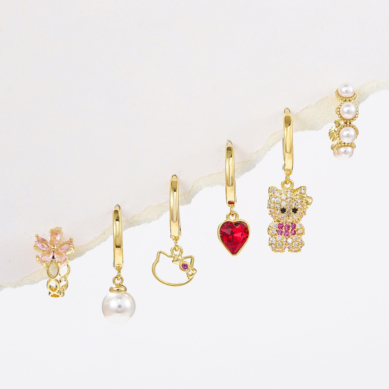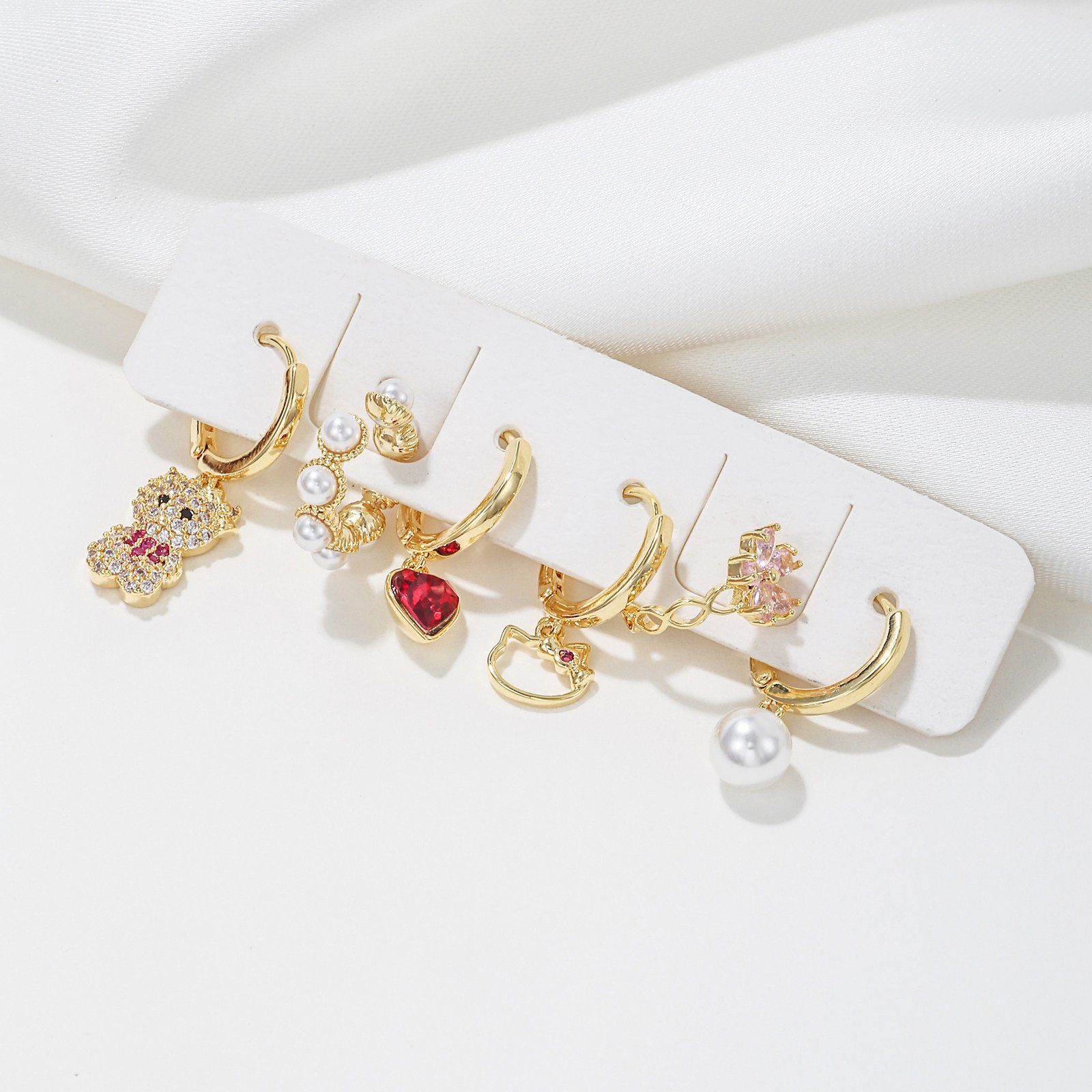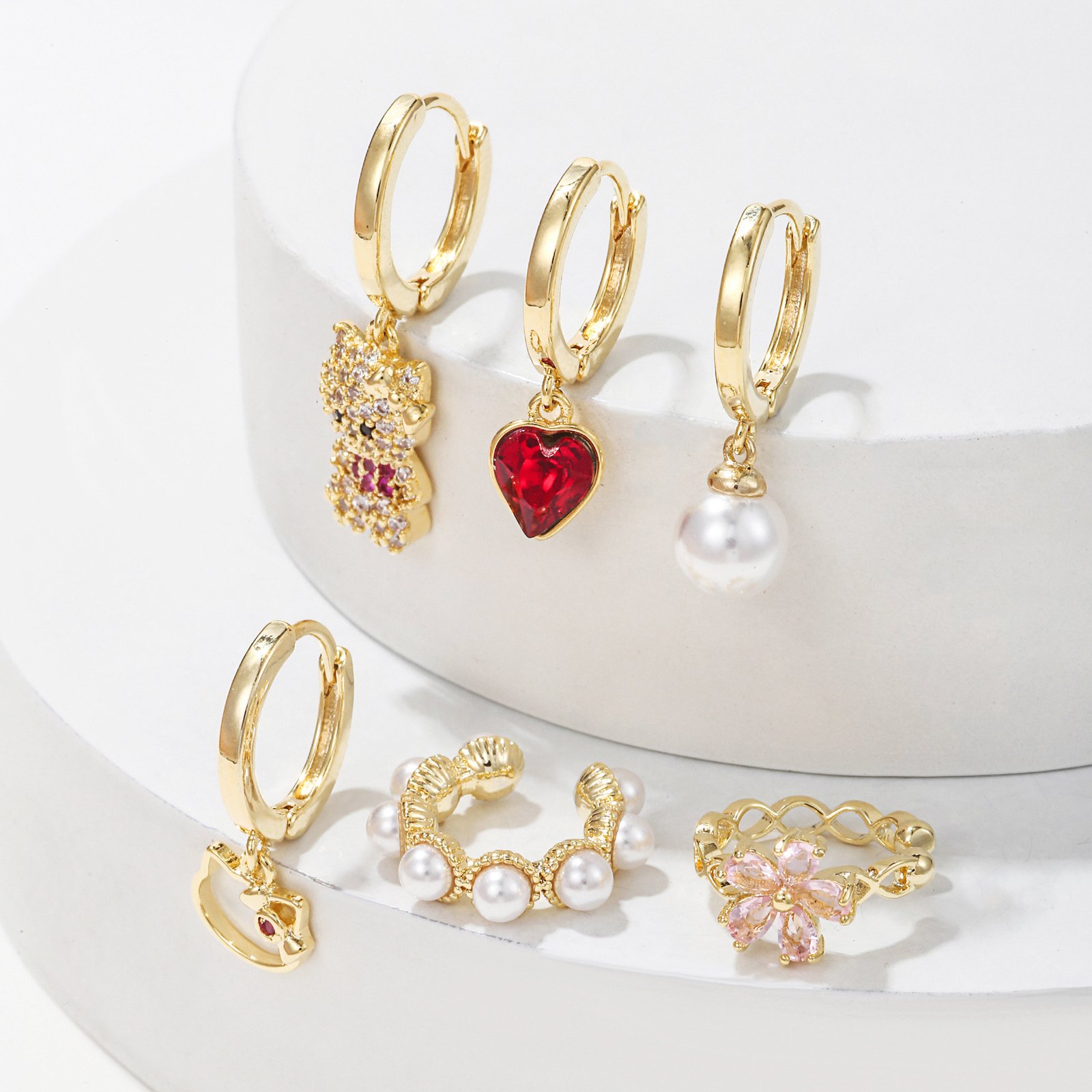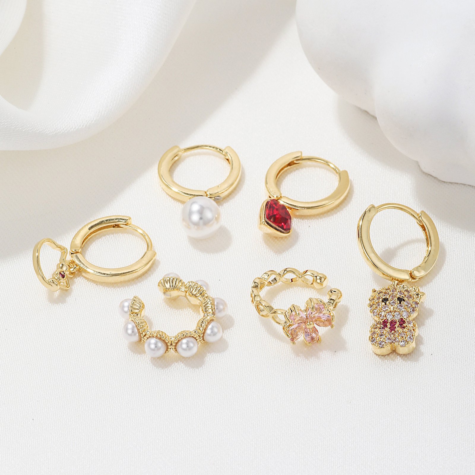 Zirconia cat bear pear heart flower huggie earrings set wholesale jewelry Factory