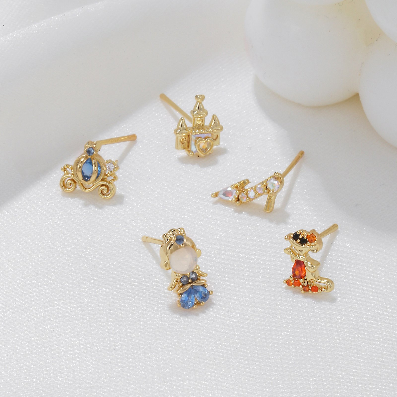 Zirconia crown high heels princess castle stud earrings set wholesale
