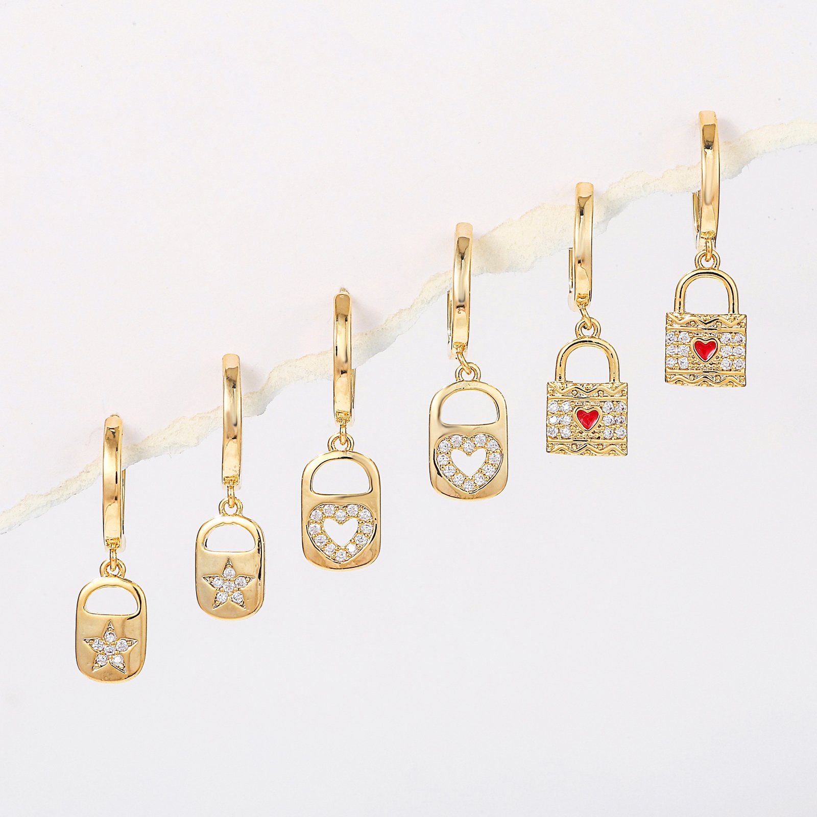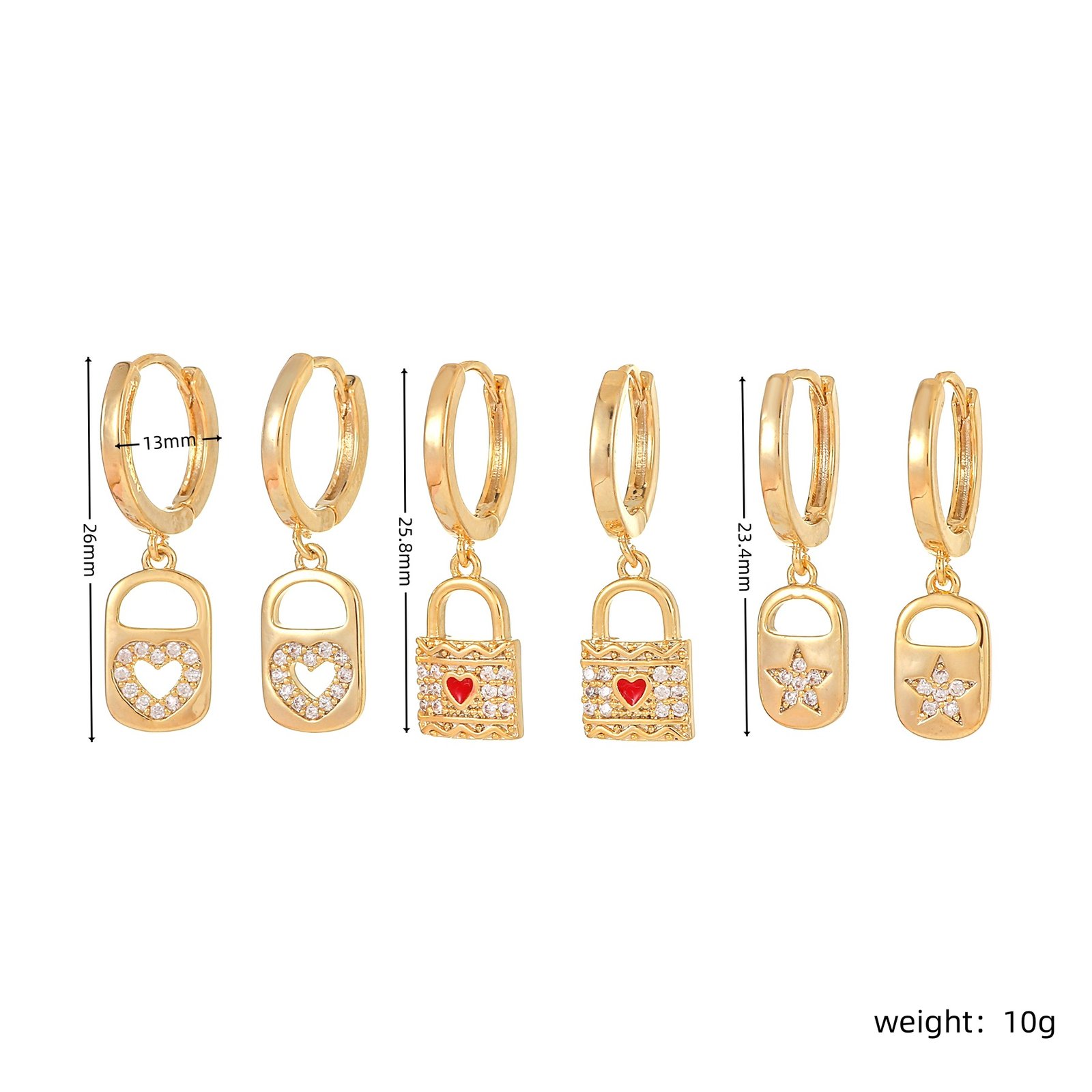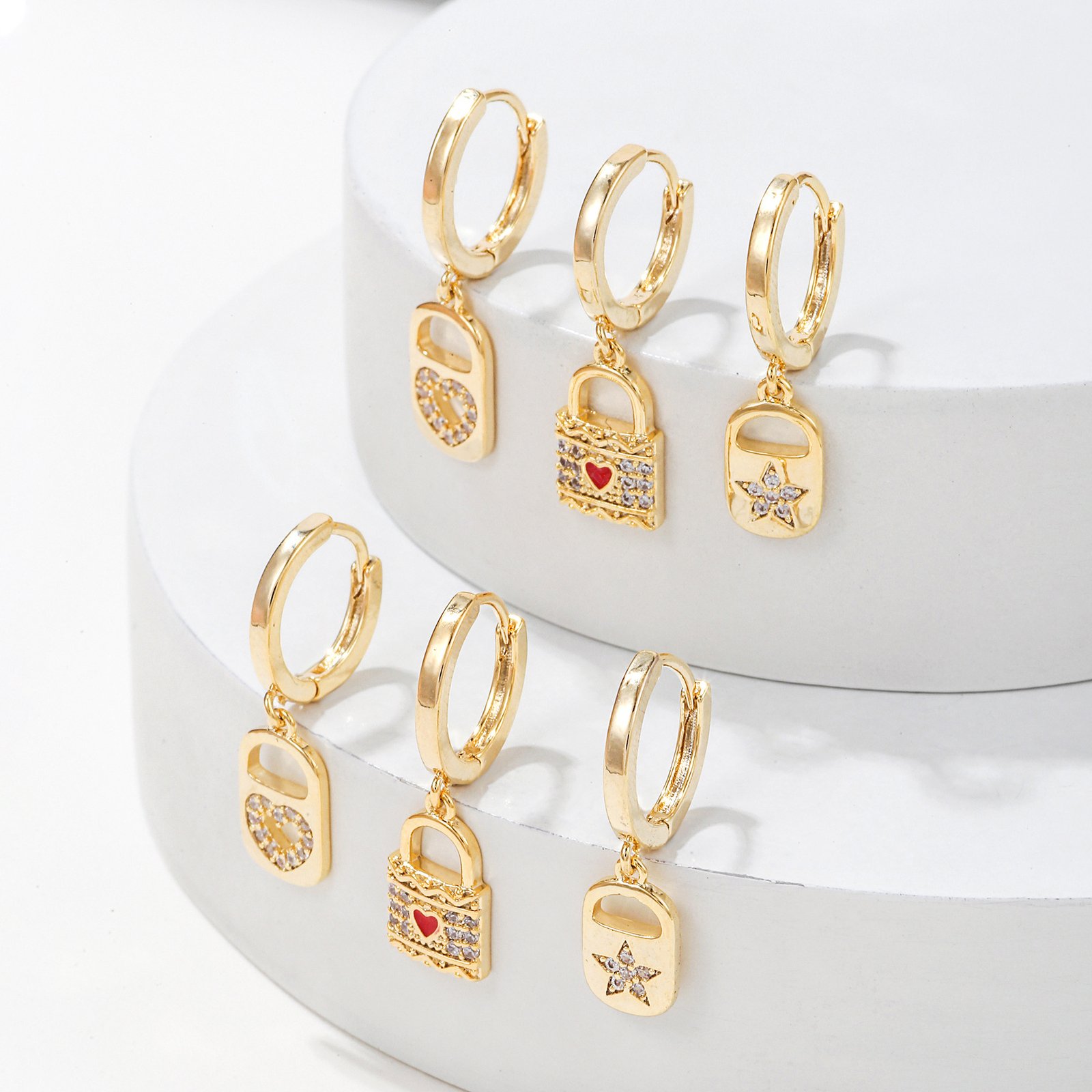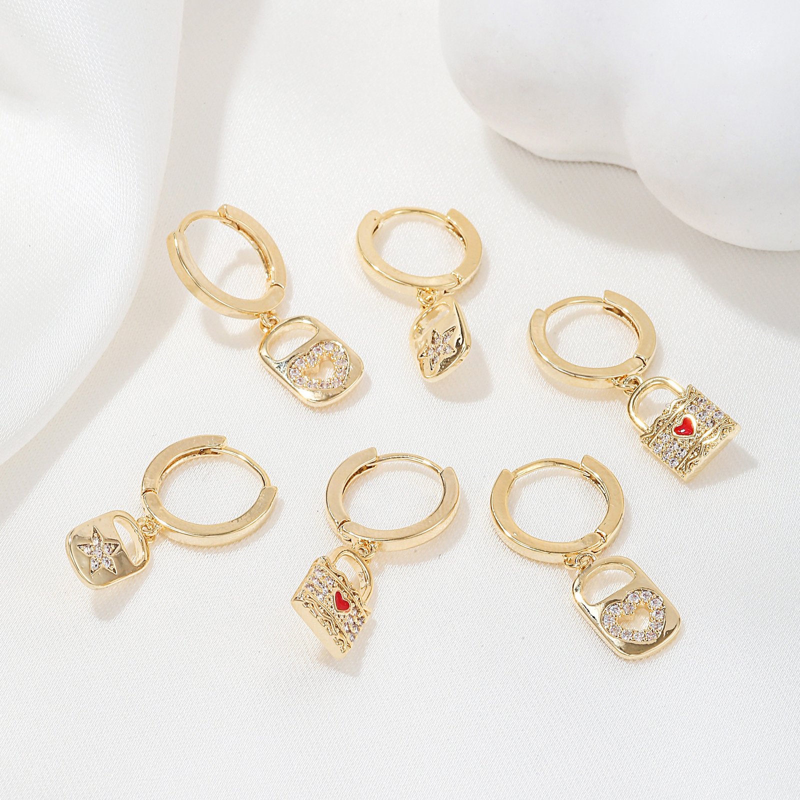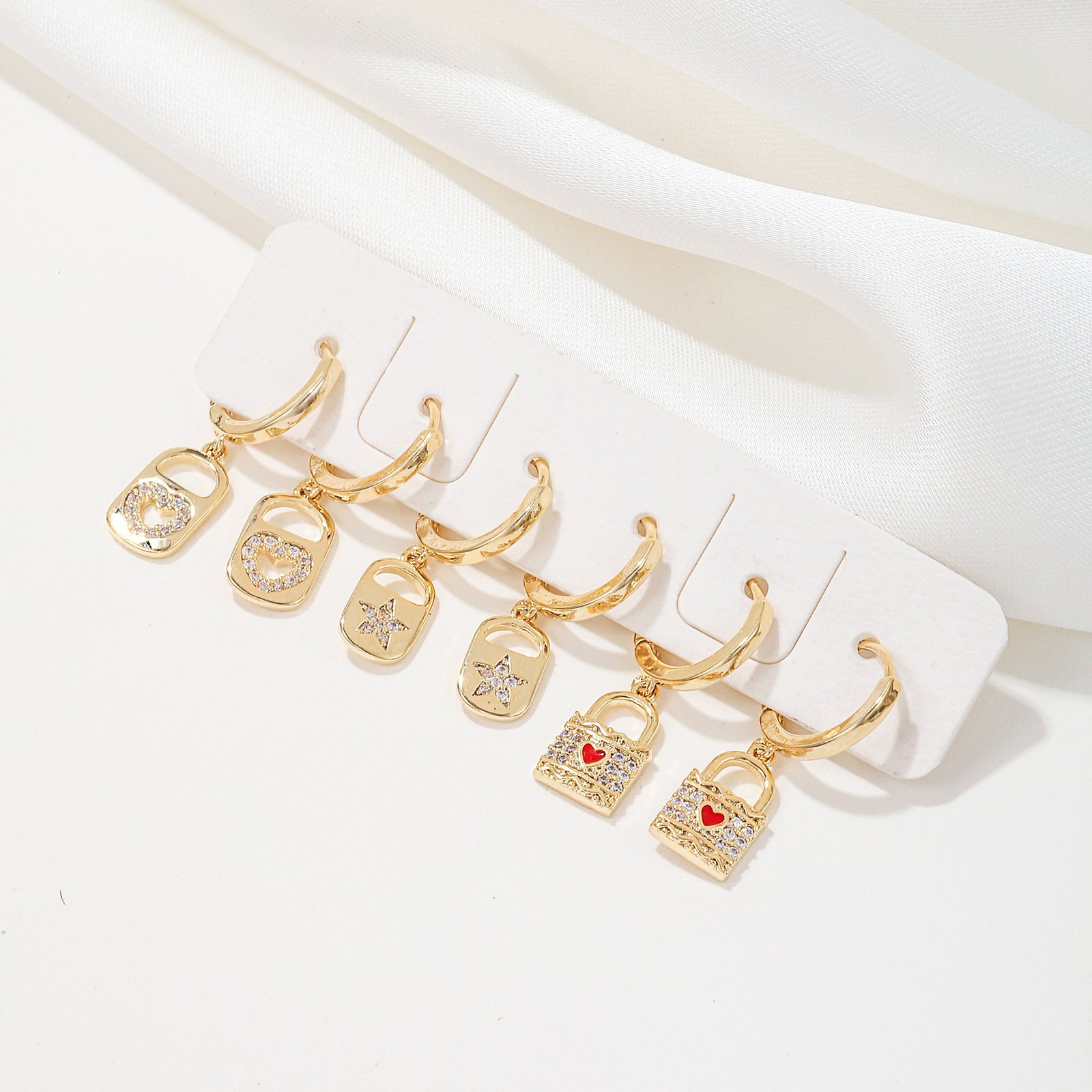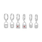Zirconia heart lock star drop huggie earrings set wholesale jewelry china factory