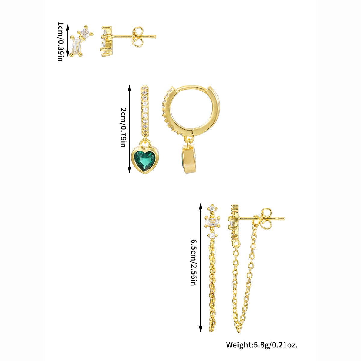 Home Earrings Earrings Set Zirconia heart tassel drop huggie earrings set wholesale jewelry china factory
