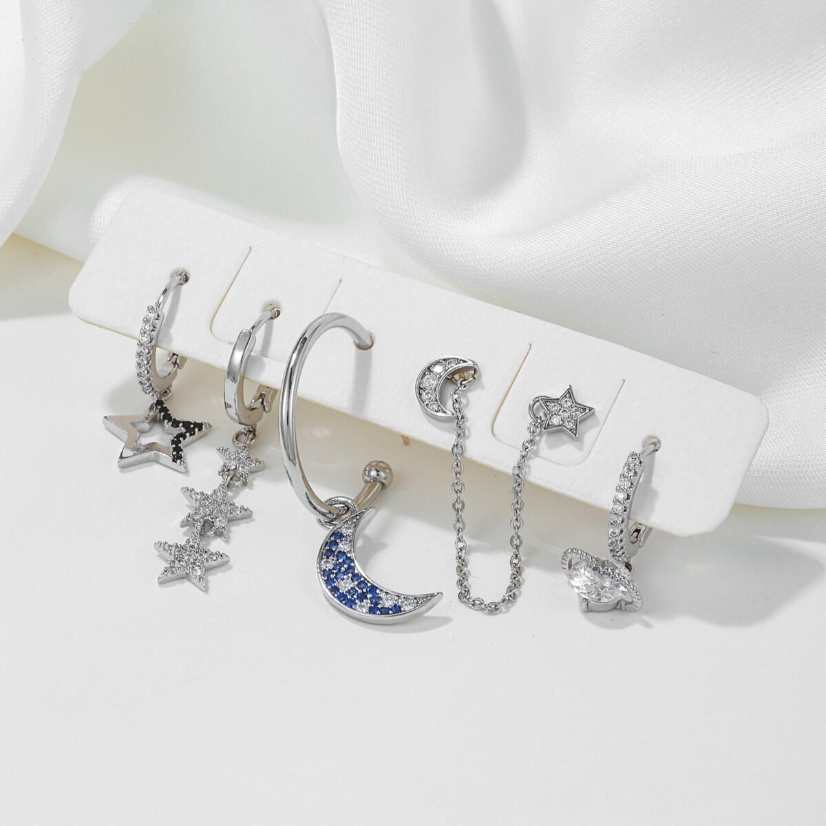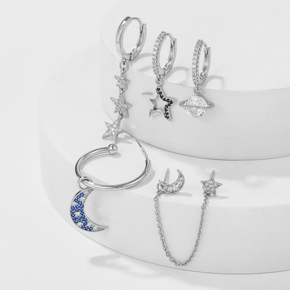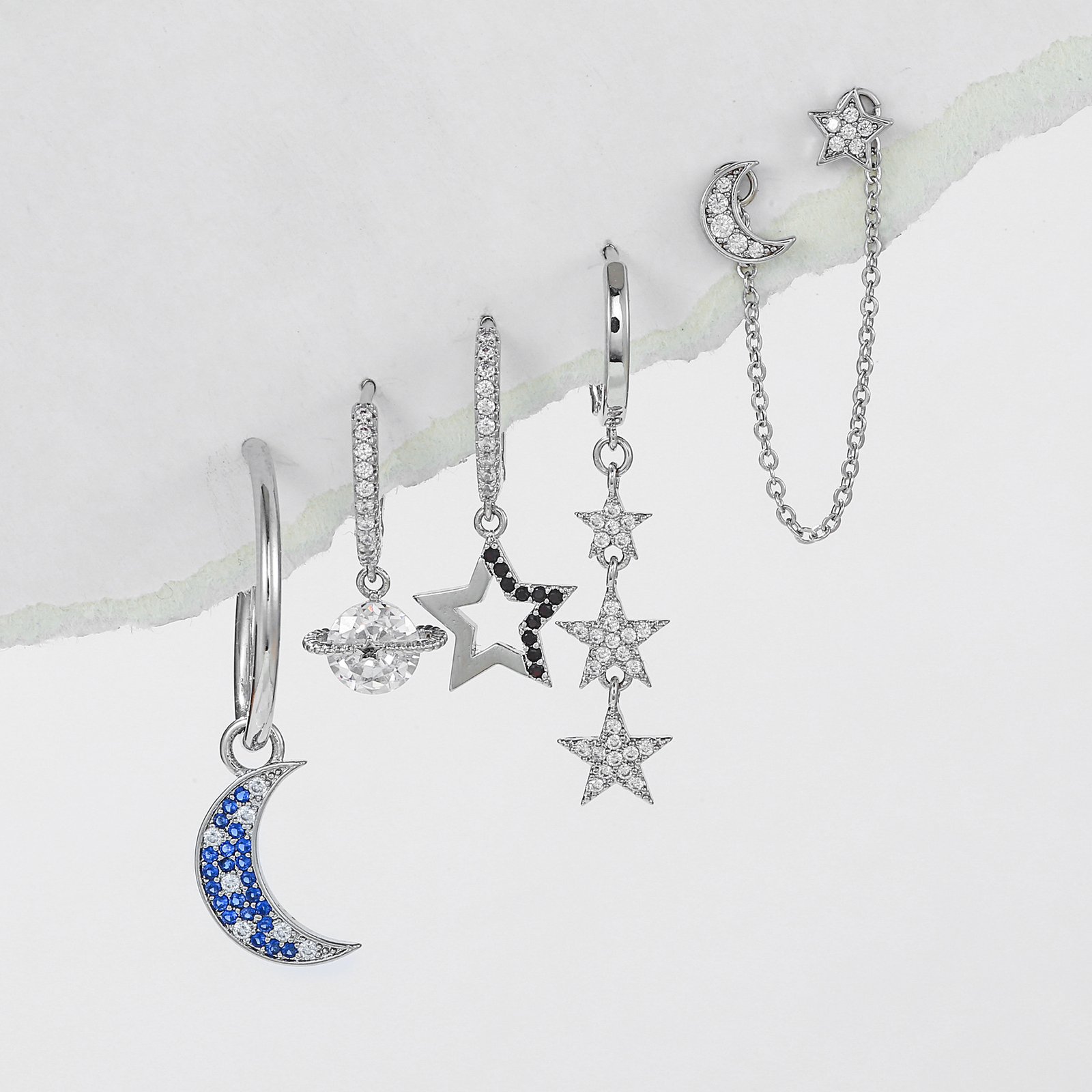 Zirconia moon star galaxy drop huggie earrings set china supplier factory