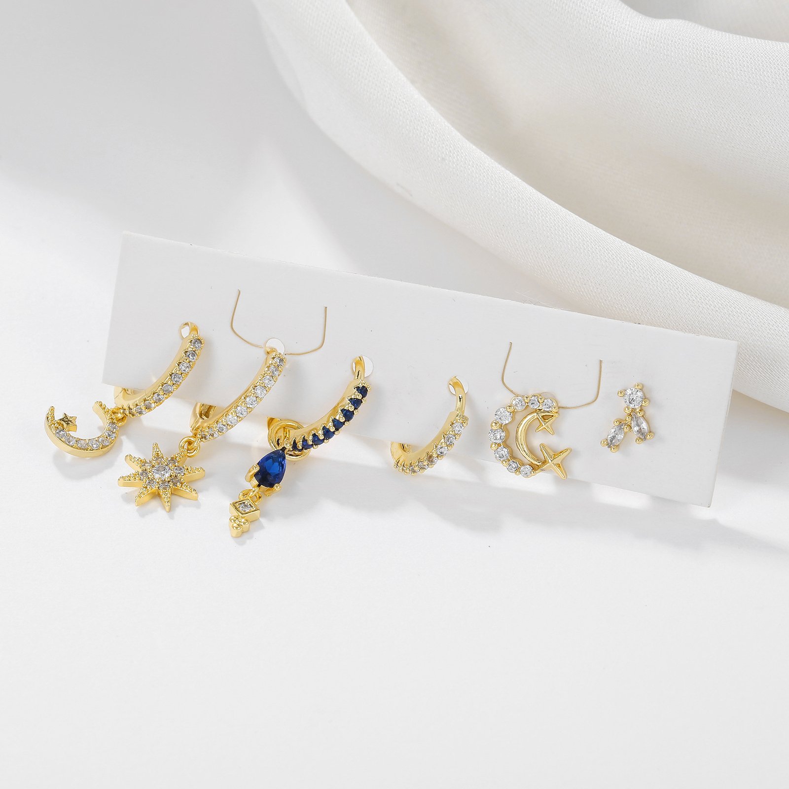 zirconia moon star galaxy stud huggie drop earrings set wholesale