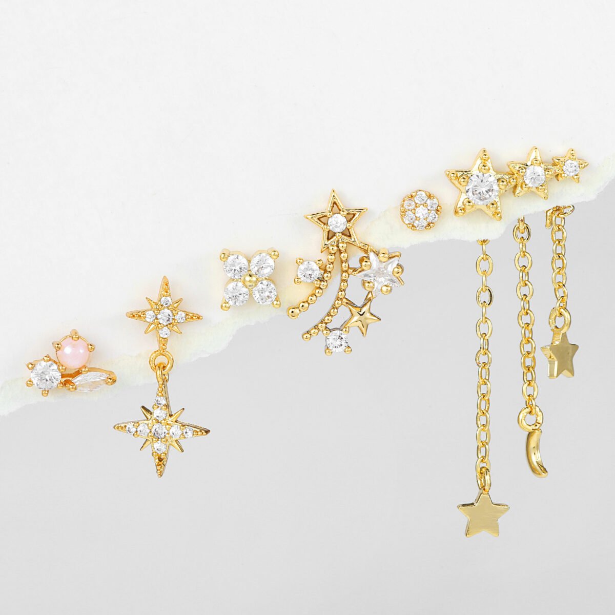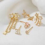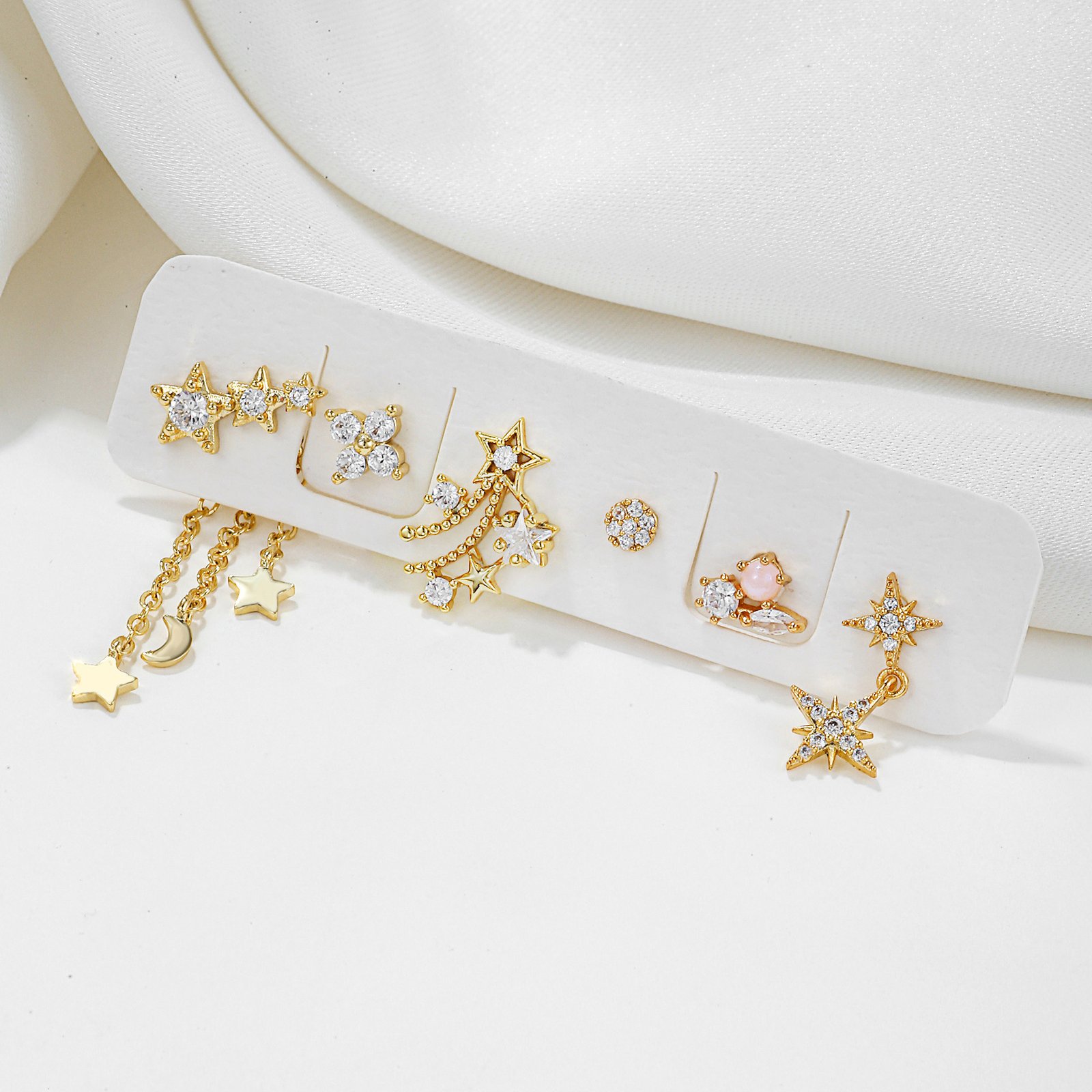 Zirconia moon star tassel drop stud earrings set wholesale jewelry china factory