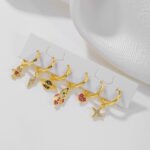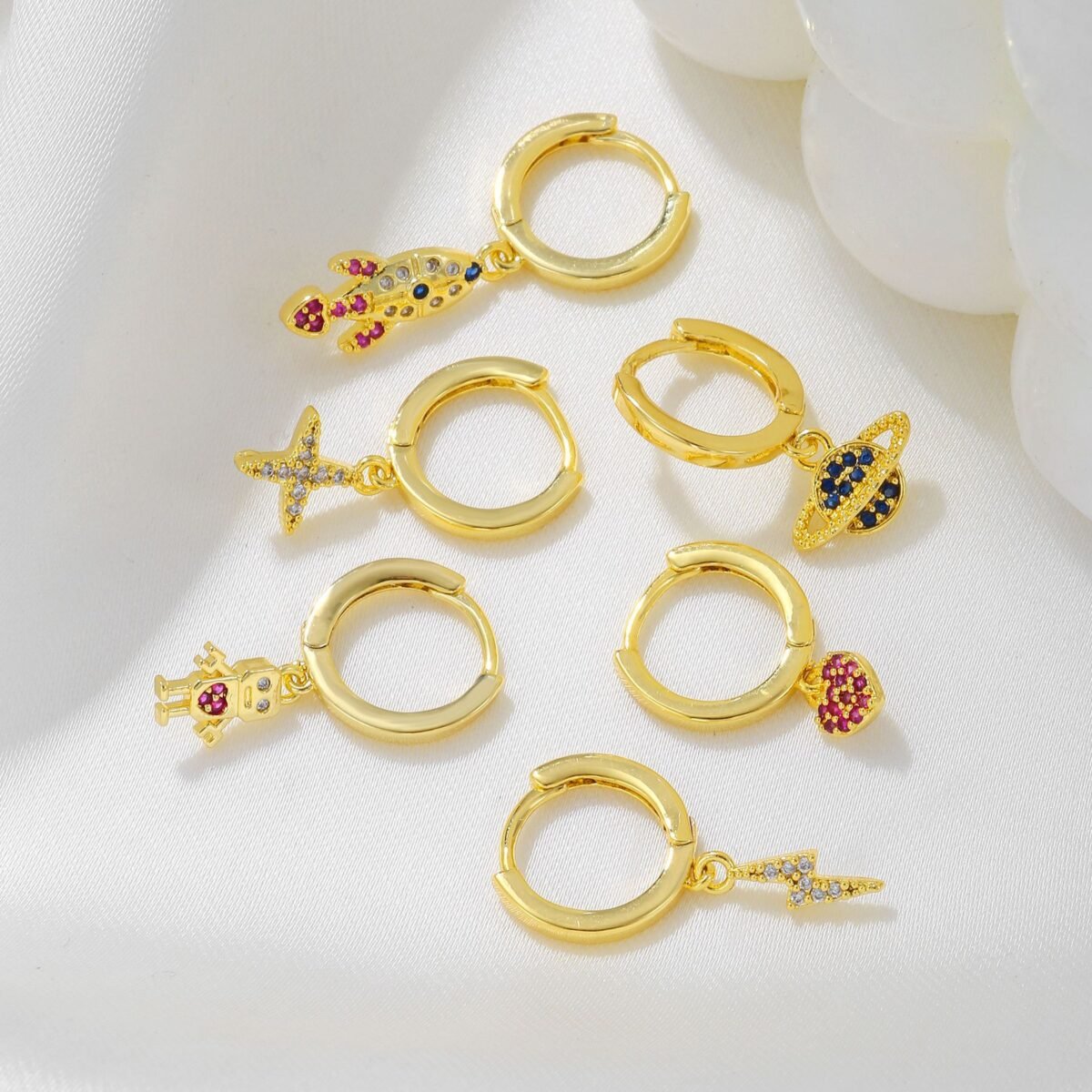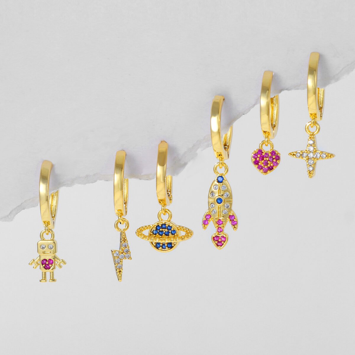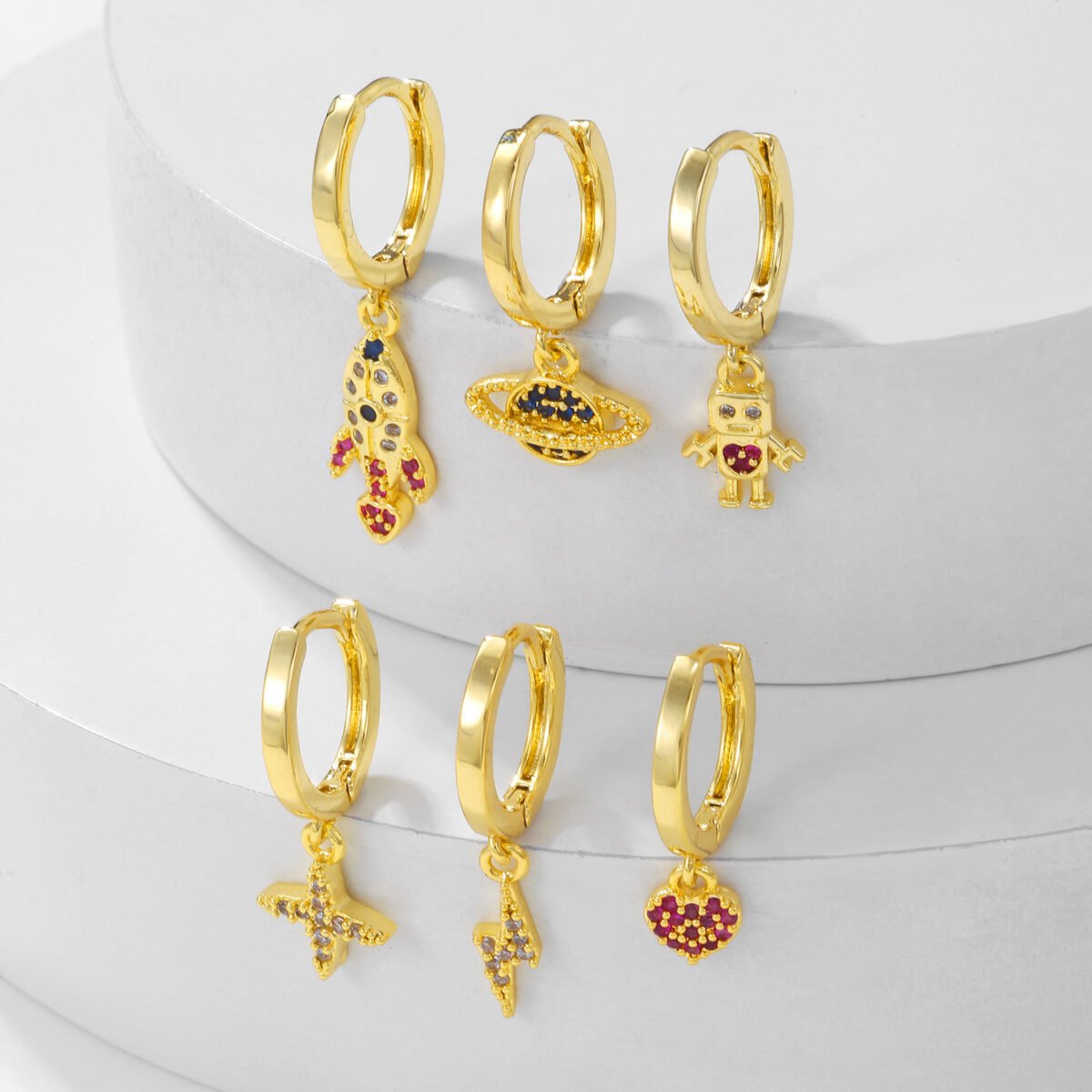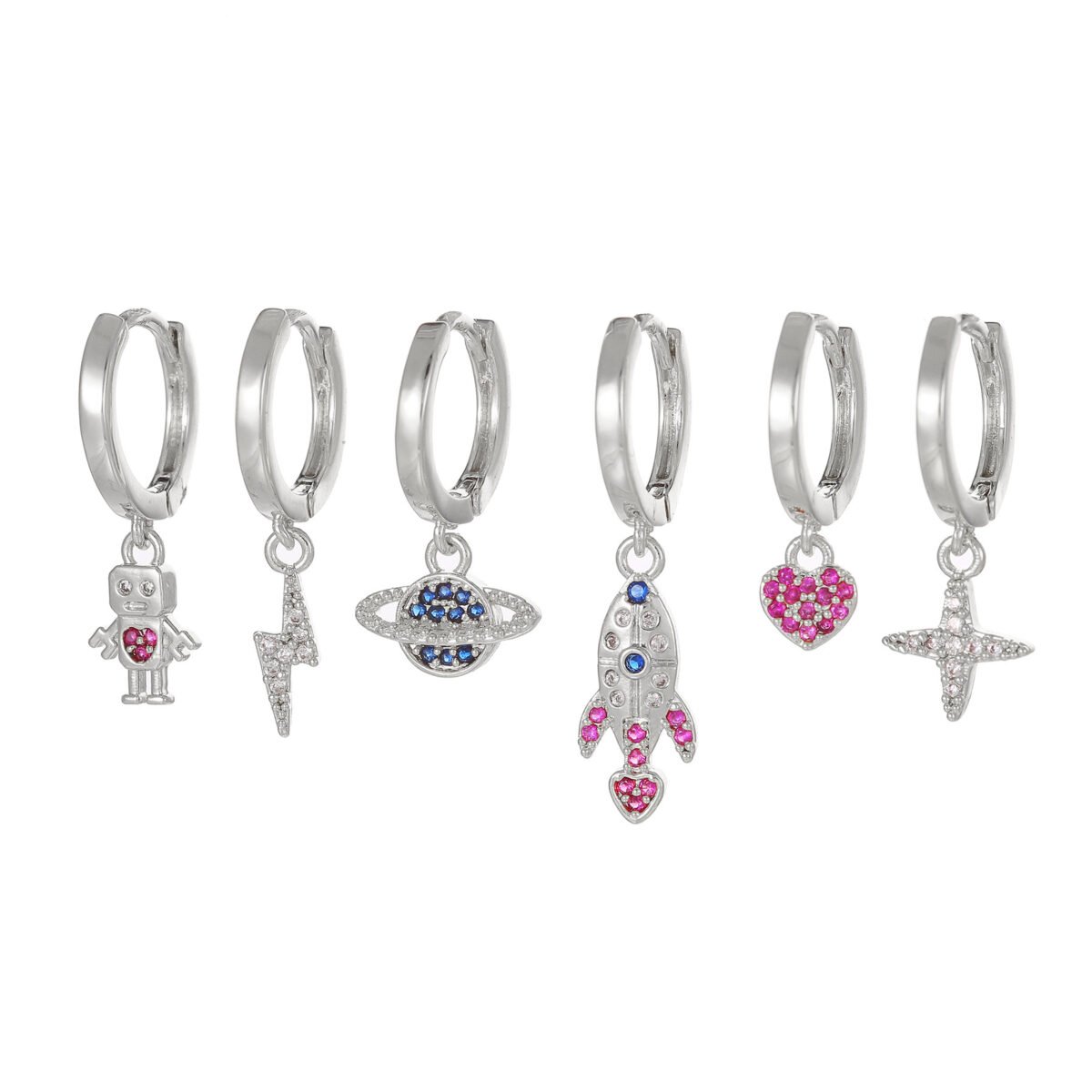 Zirconia Spaceship lightning robot galaxy heart drop huggie earrings set wholesale